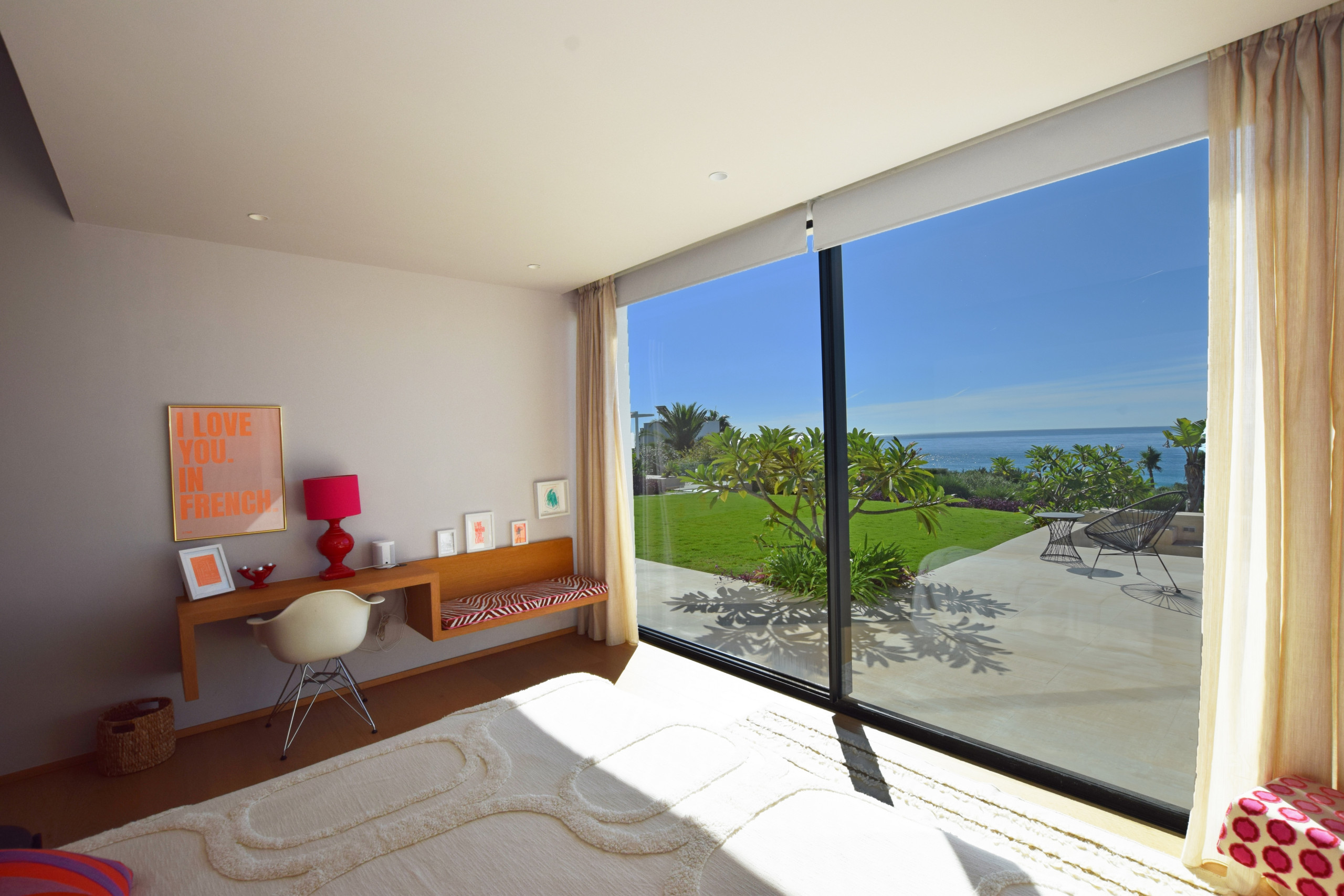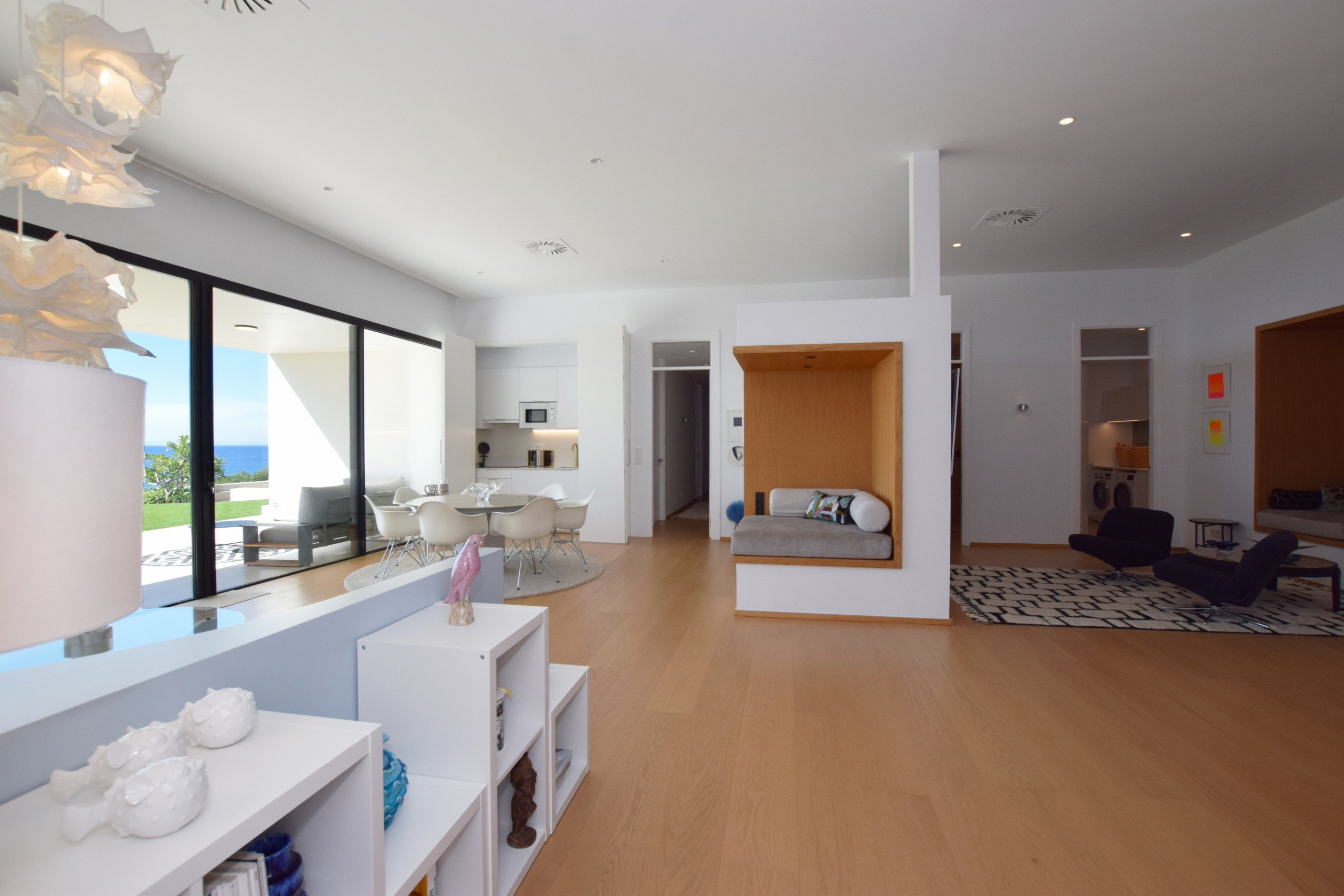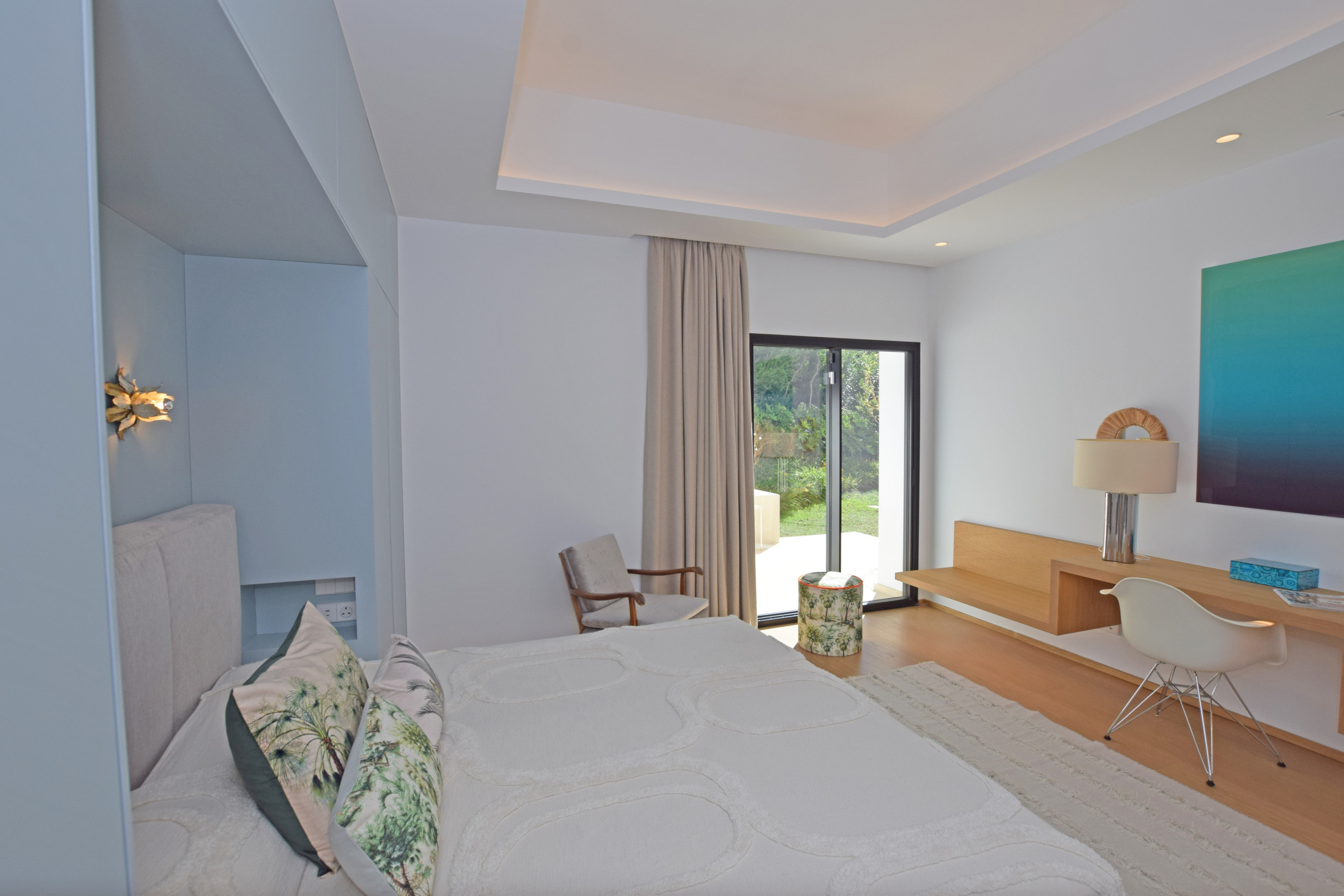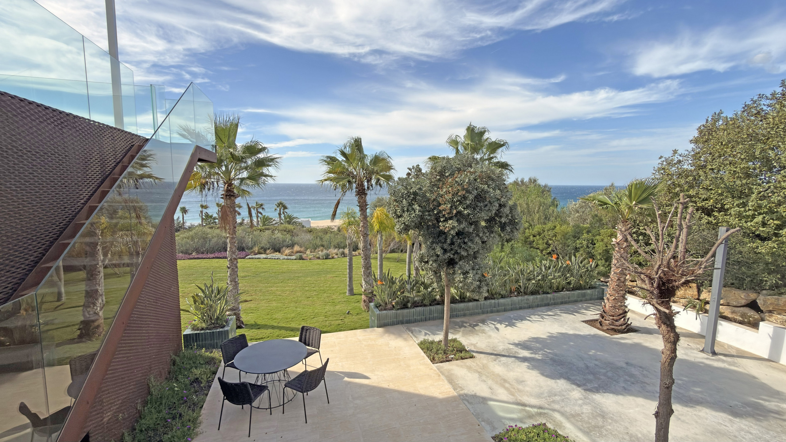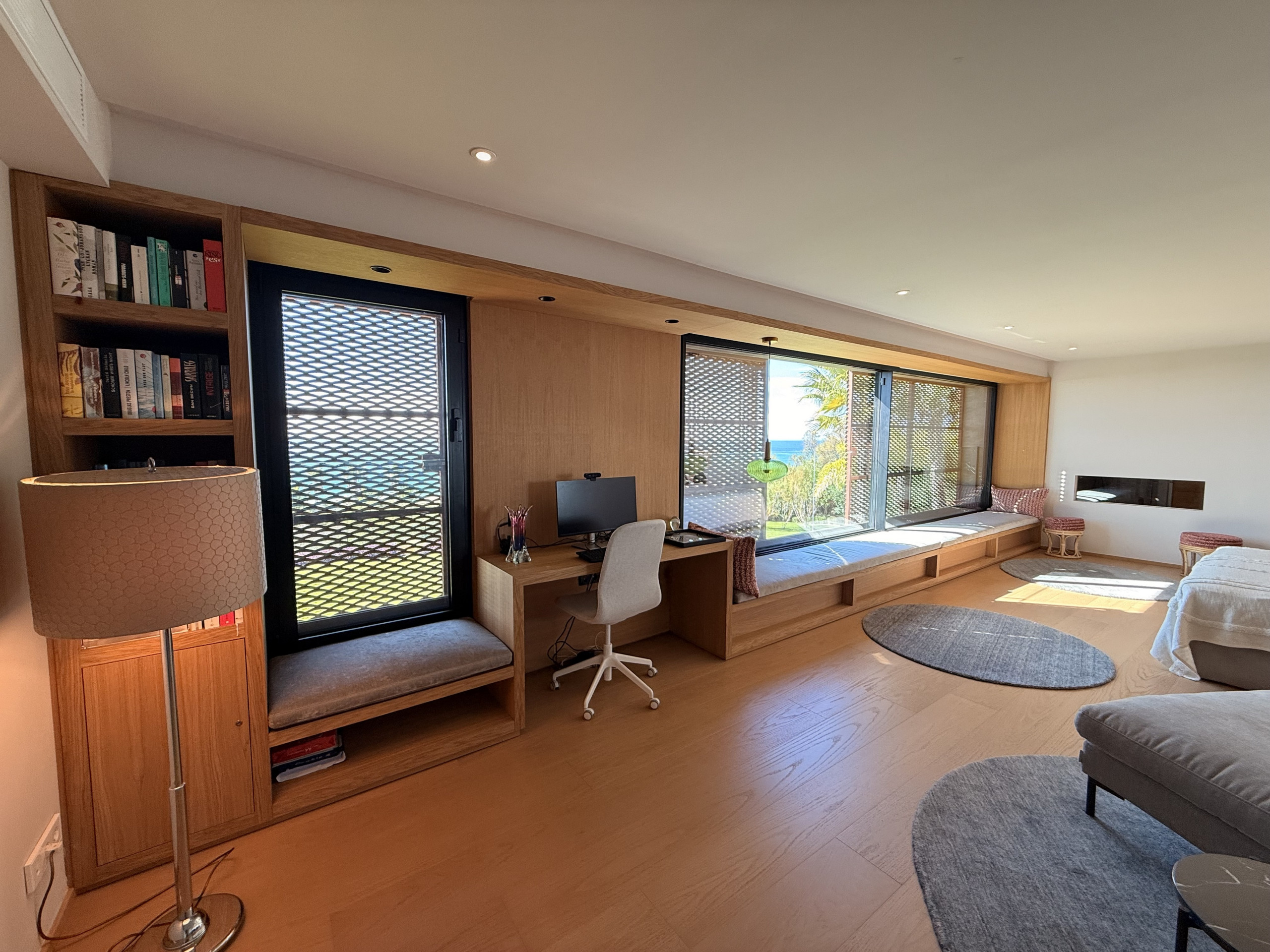 Accede a la planta inferior a través de una elegante escalera. Esta planta está inteligentemente distribuida para ofrecer privacidad y diferentes áreas de esparcimiento, todas ellas conectadas al exuberante jardín y al mar.