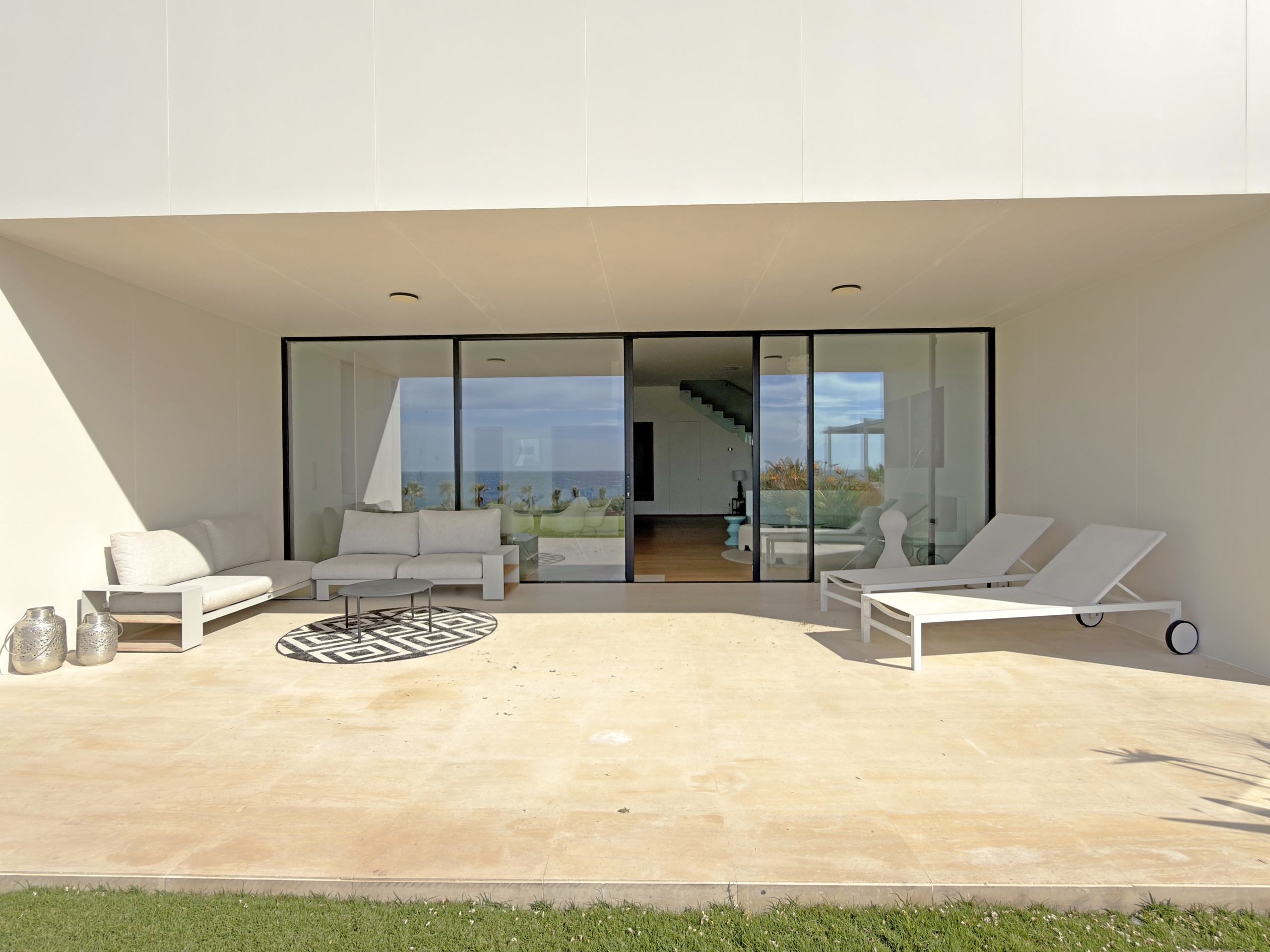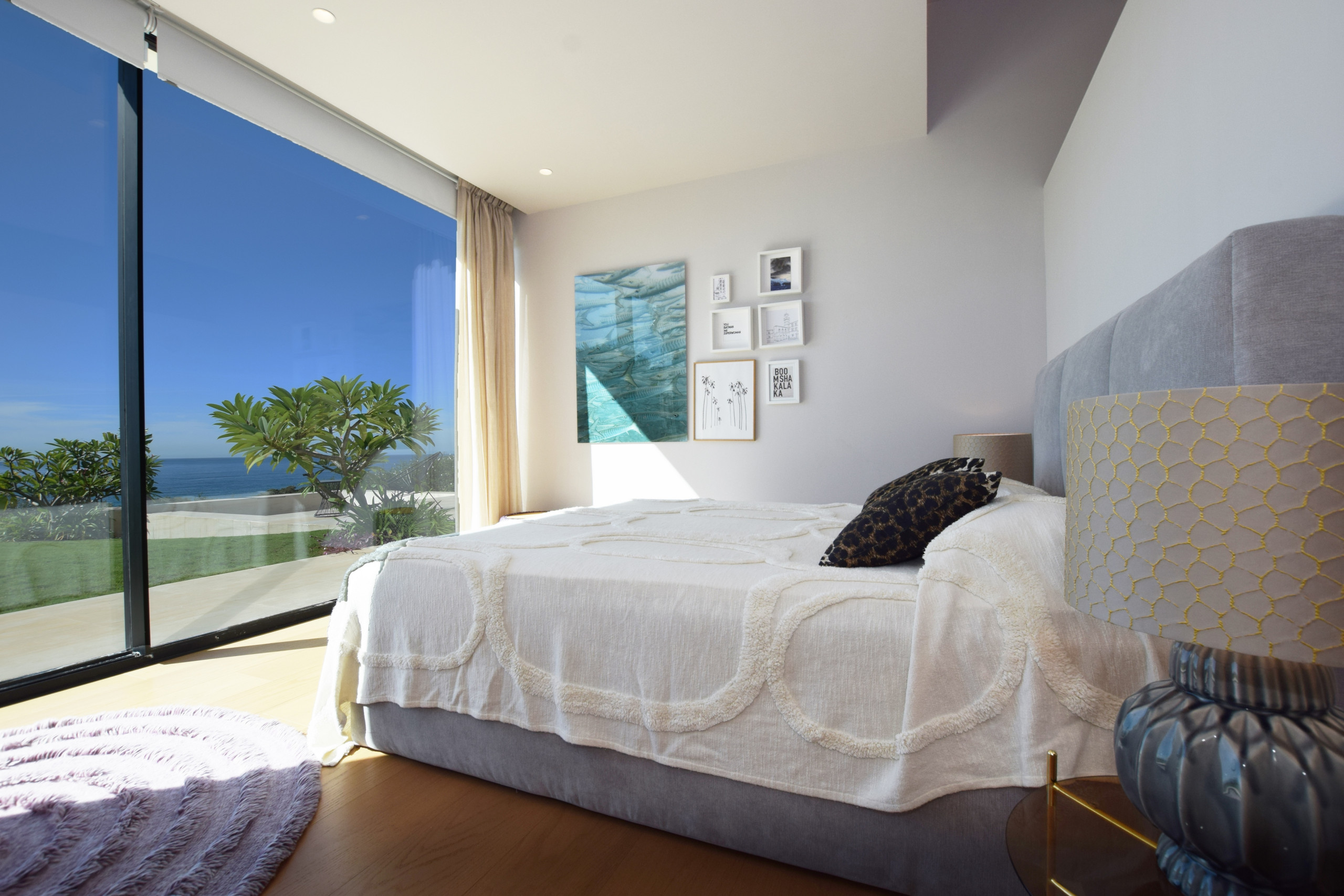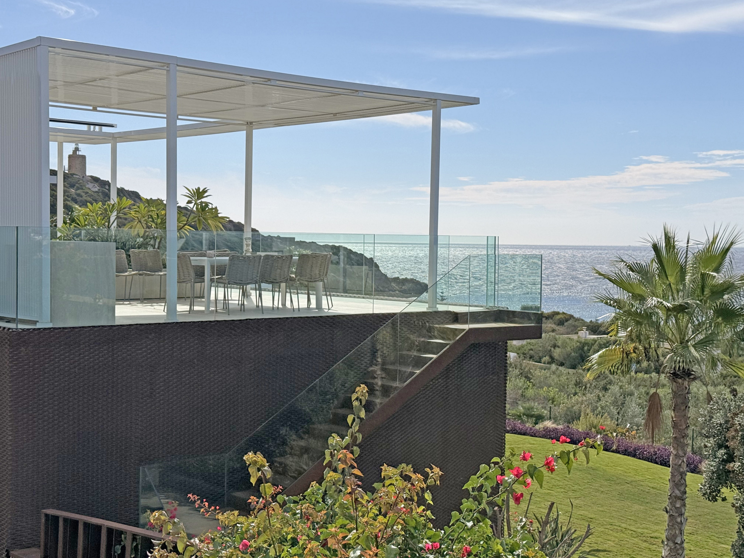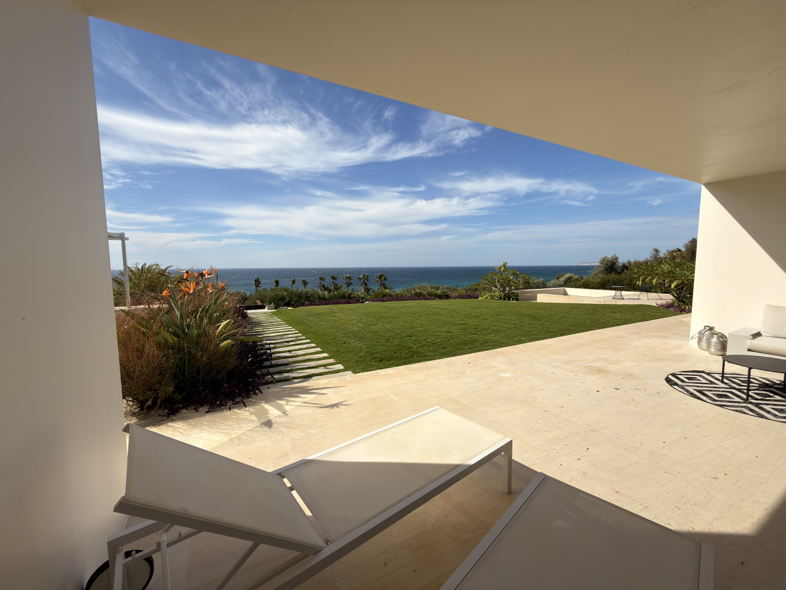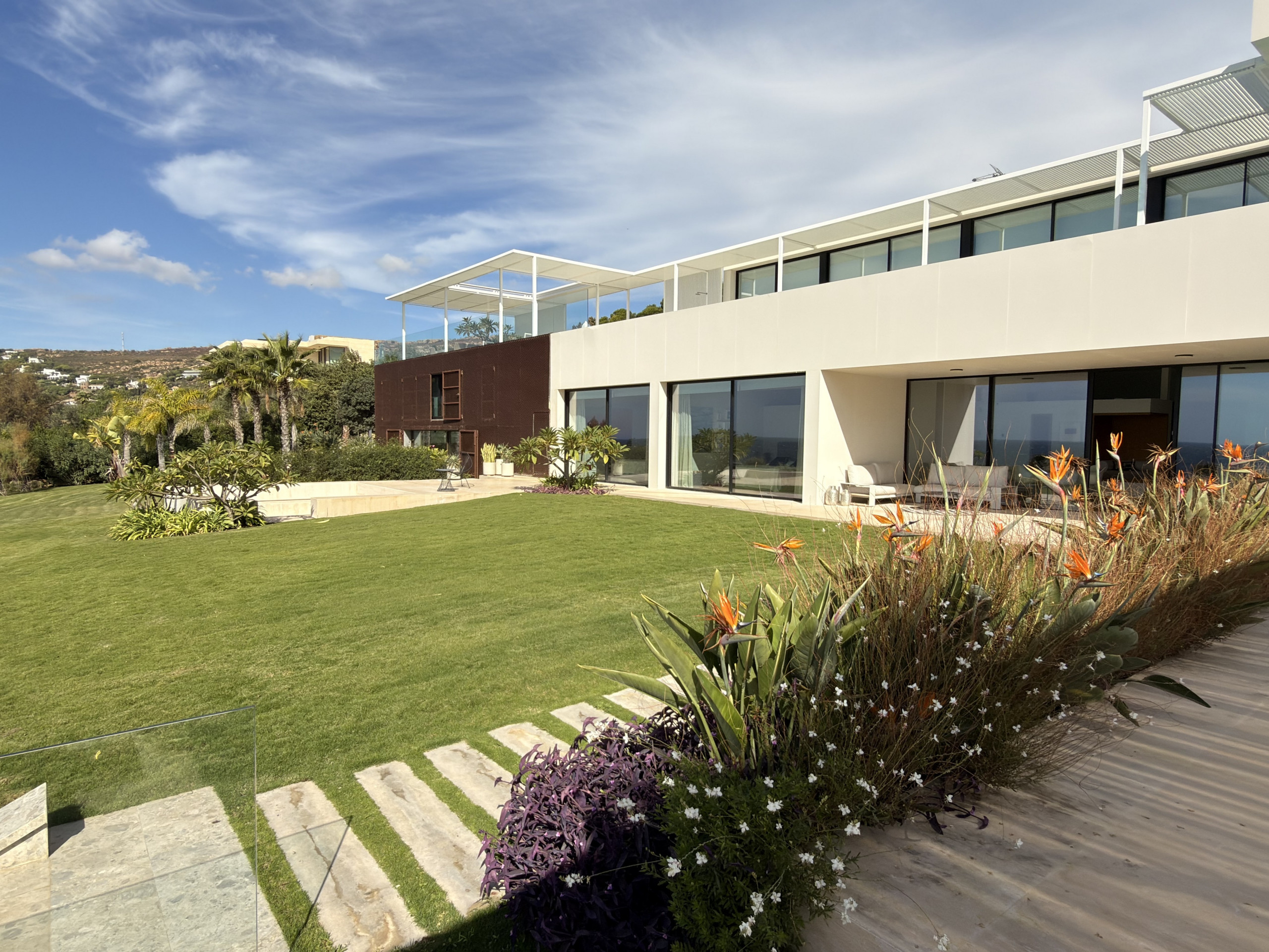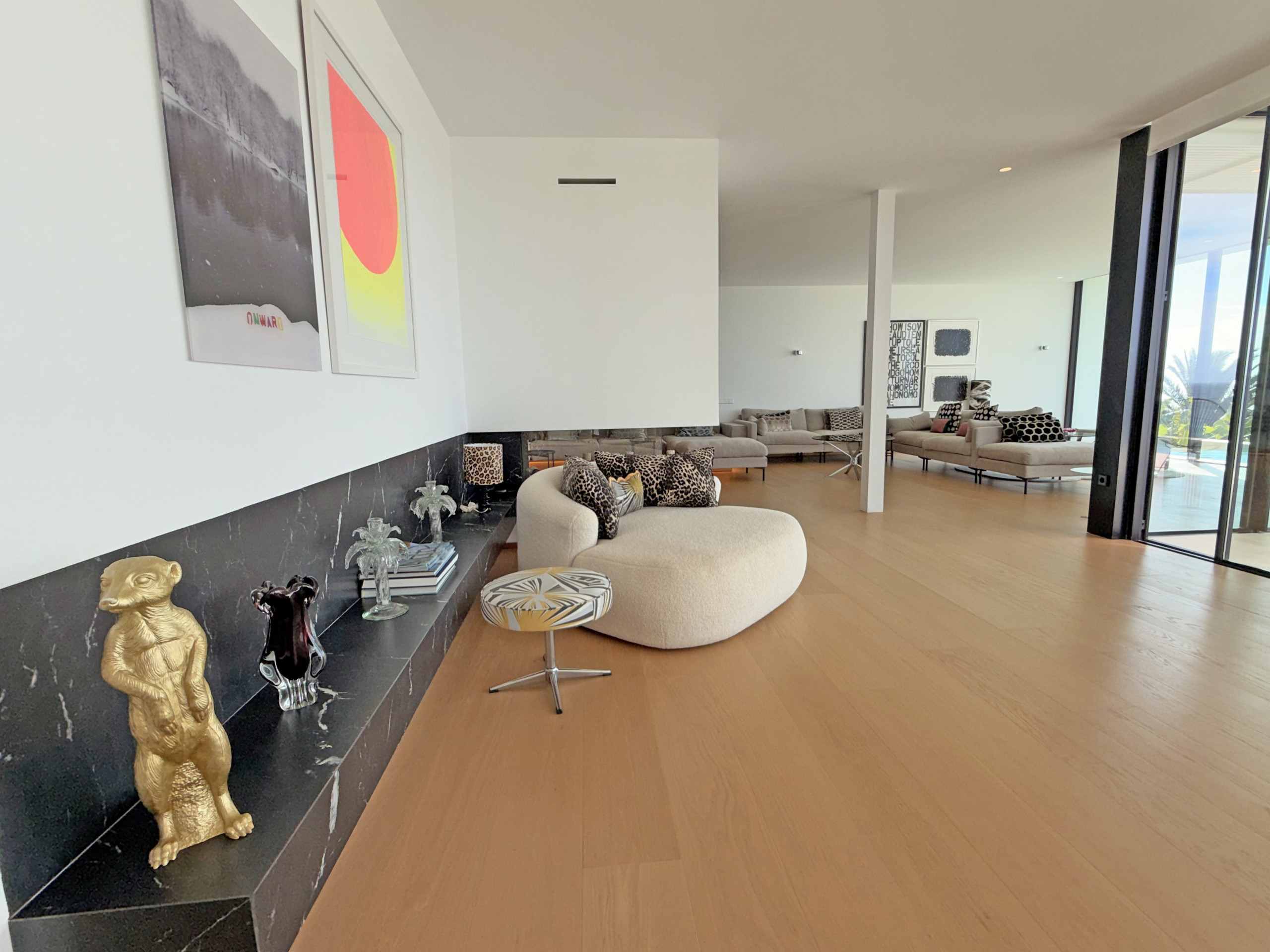 Accede a la planta inferior a través de una elegante escalera. Esta planta está inteligentemente distribuida para ofrecer privacidad y diferentes áreas de esparcimiento, todas ellas conectadas al exuberante jardín y al mar.
