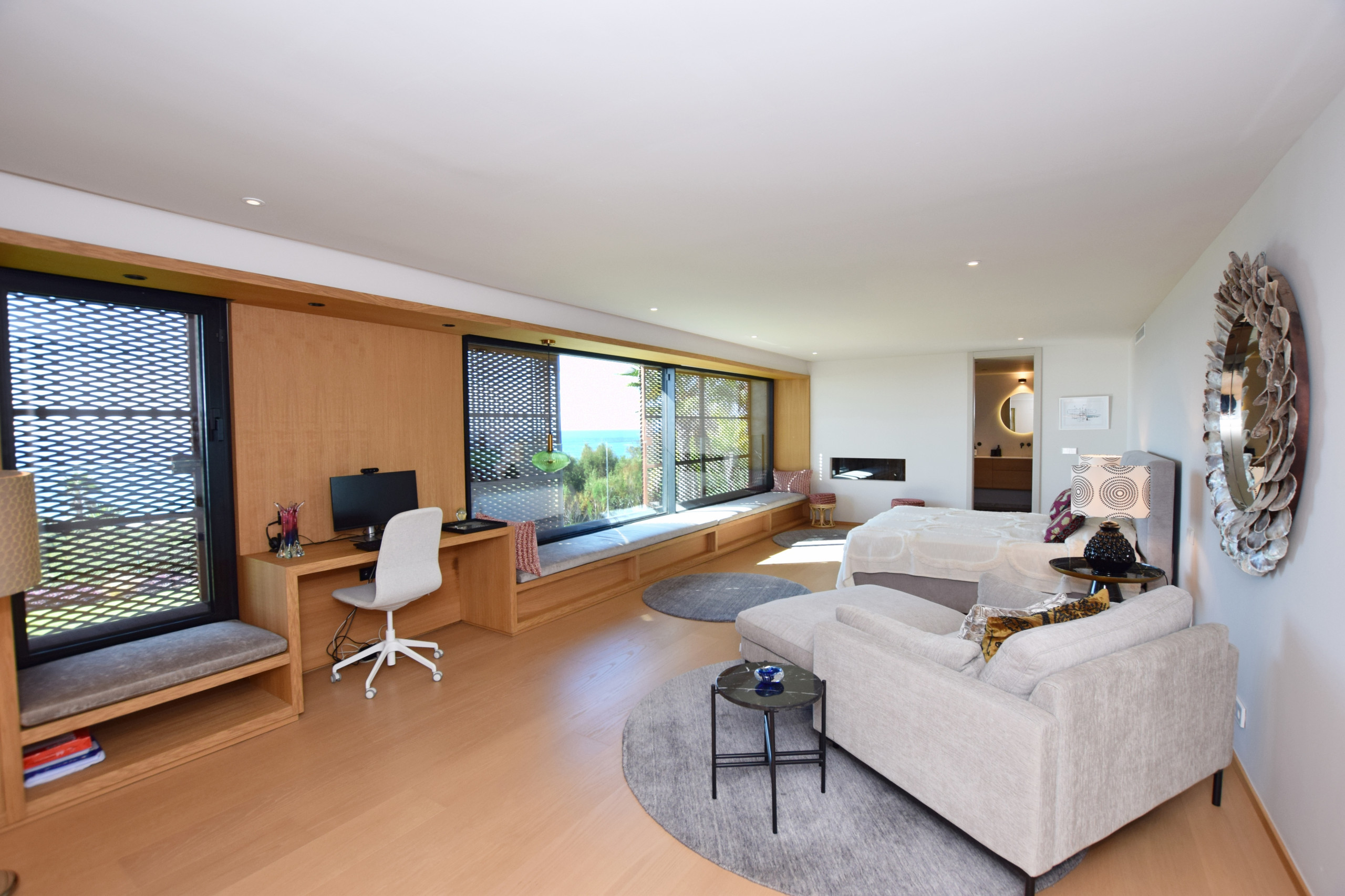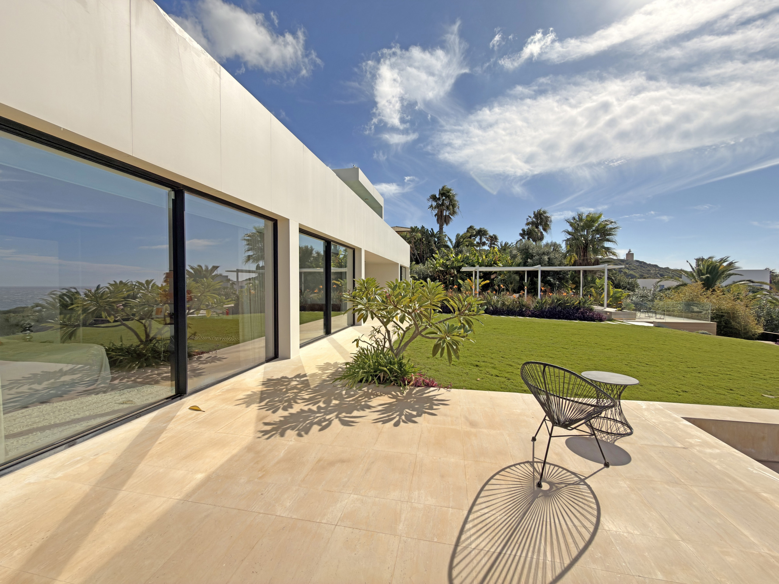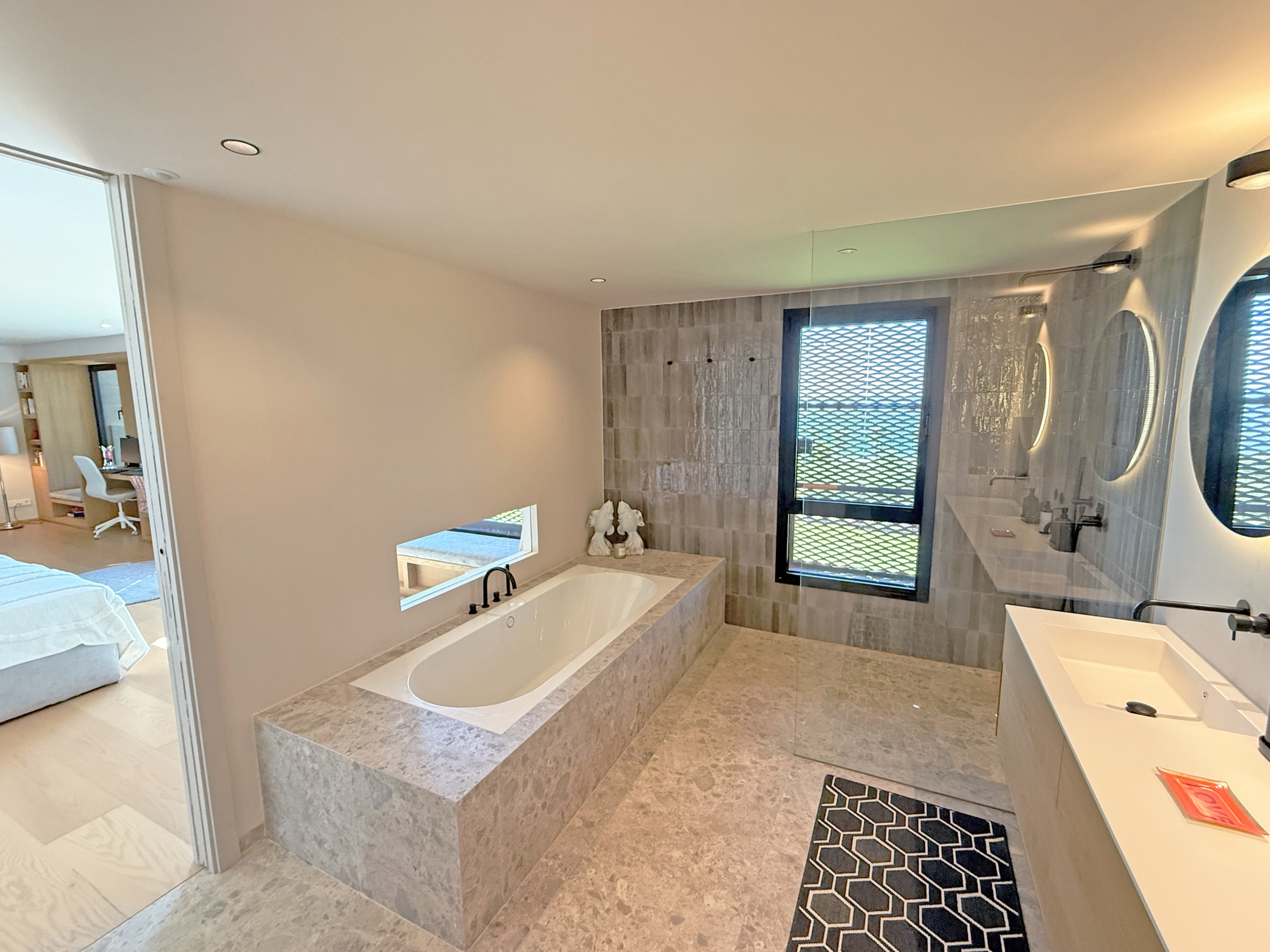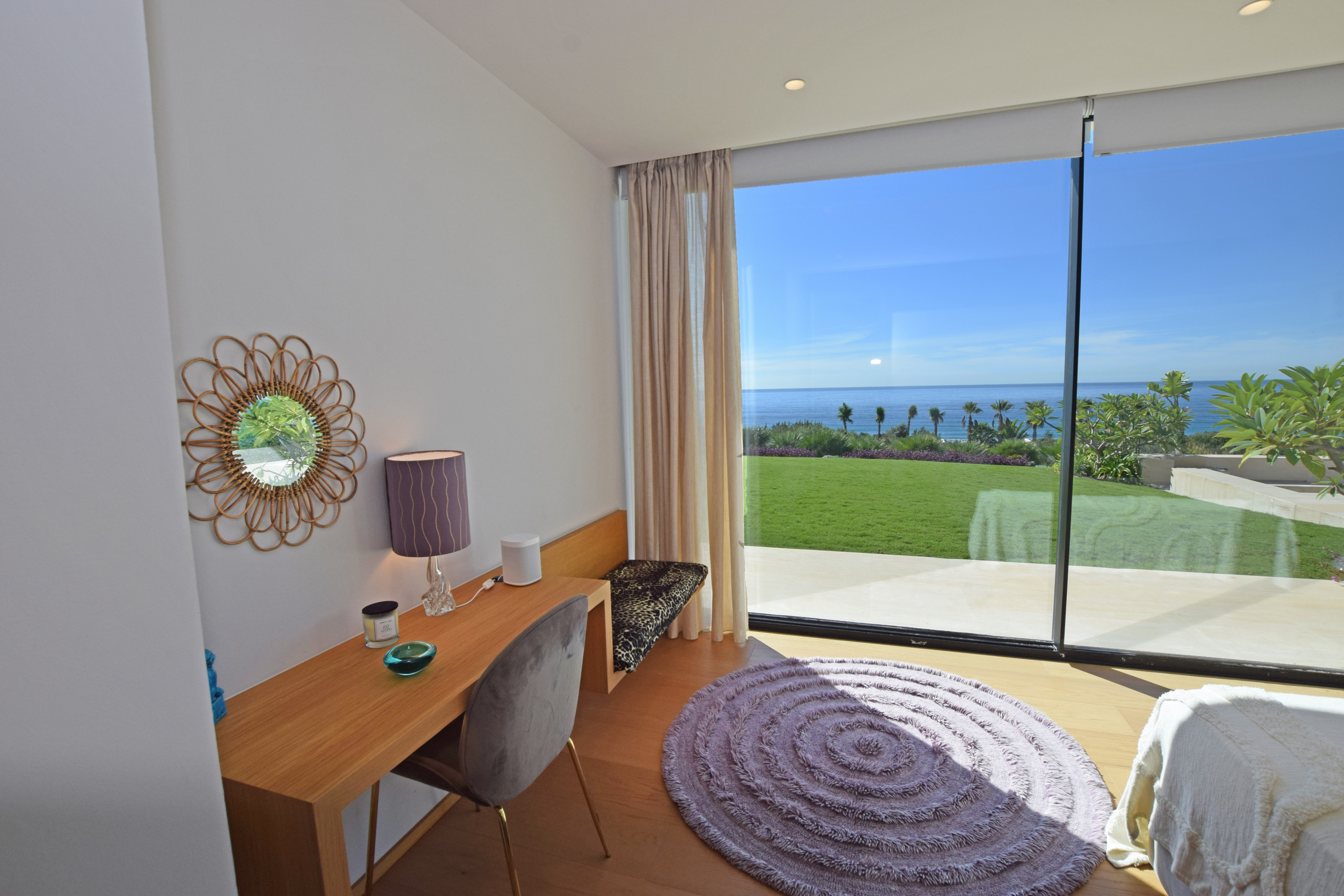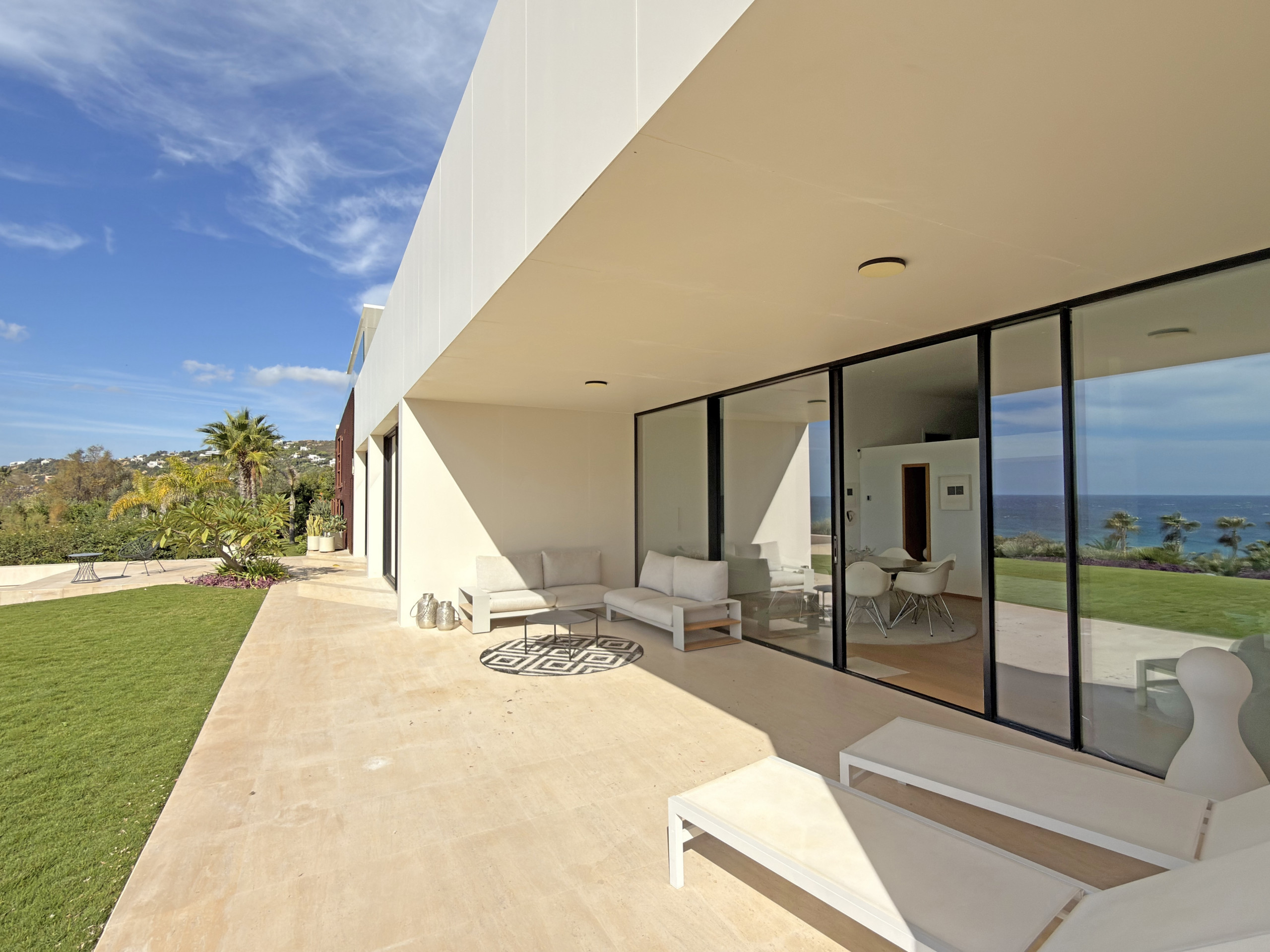 Accede a la planta inferior a través de una elegante escalera. Esta planta está inteligentemente distribuida para ofrecer privacidad y diferentes áreas de esparcimiento, todas ellas conectadas al exuberante jardín y al mar.