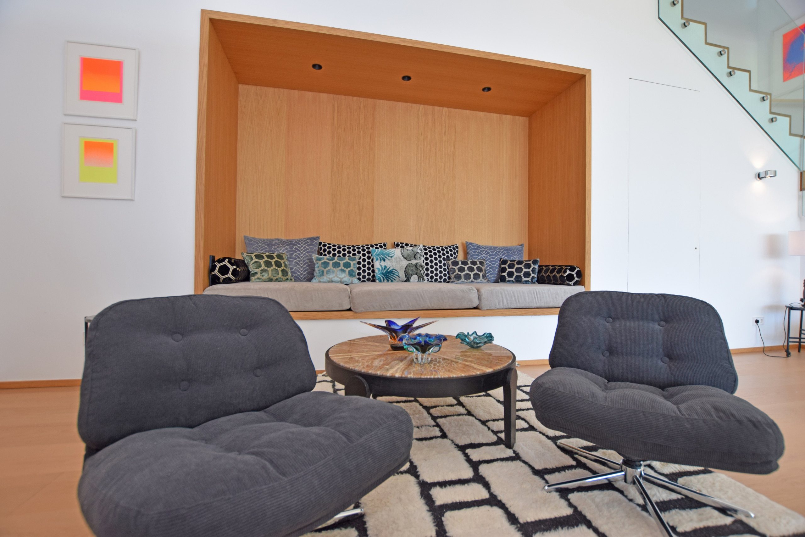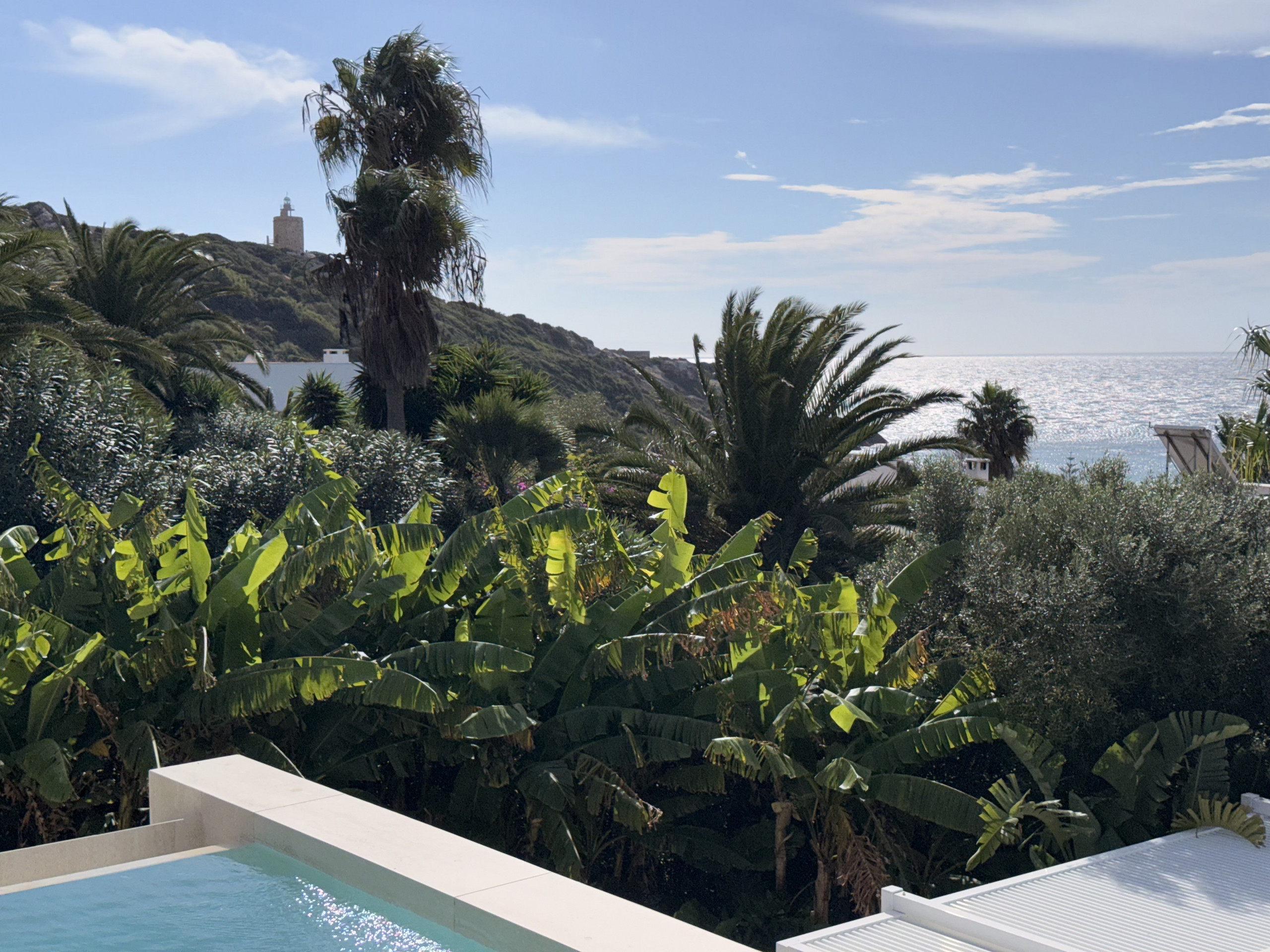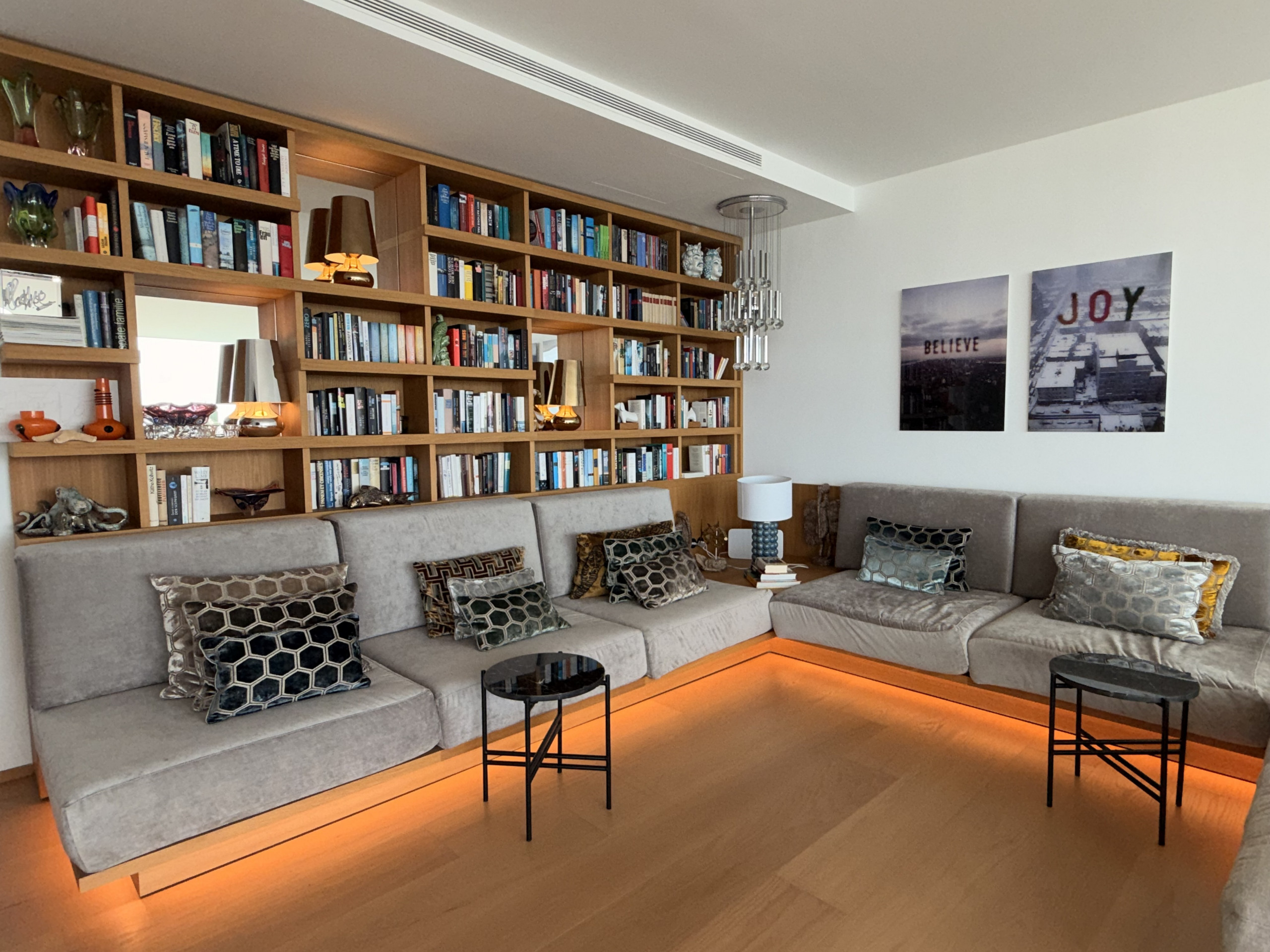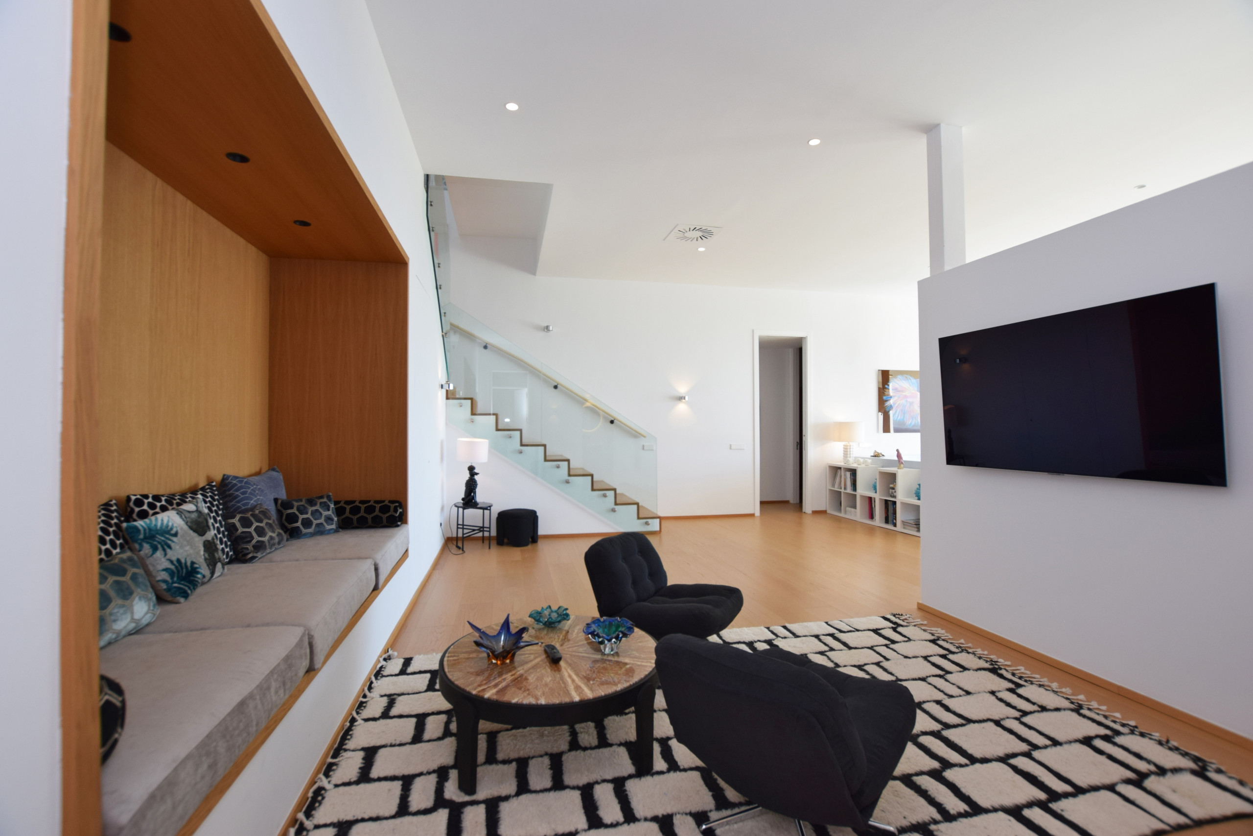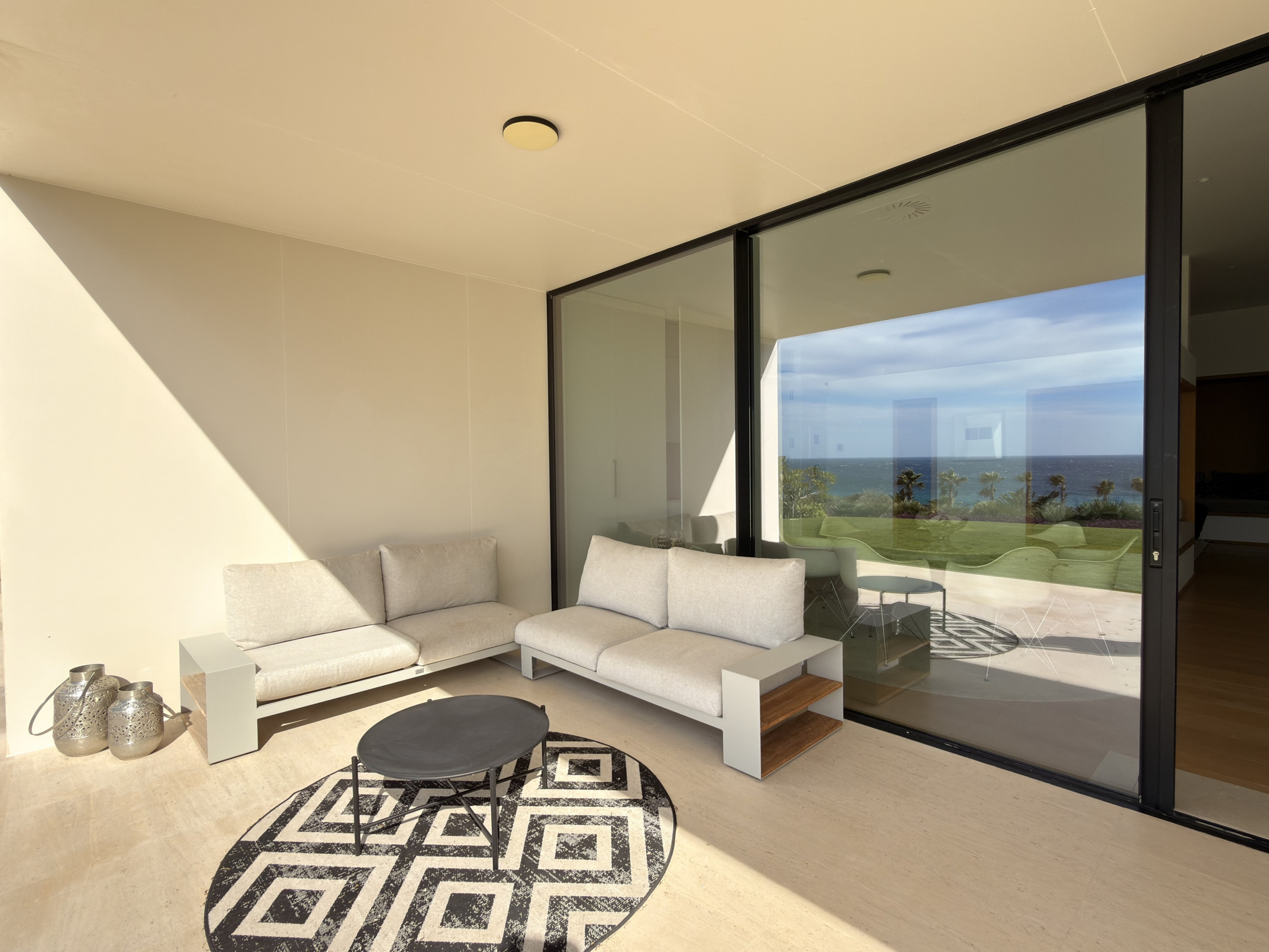 Accede a la planta inferior a través de una elegante escalera. Esta planta está inteligentemente distribuida para ofrecer privacidad y diferentes áreas de esparcimiento, todas ellas conectadas al exuberante jardín y al mar.