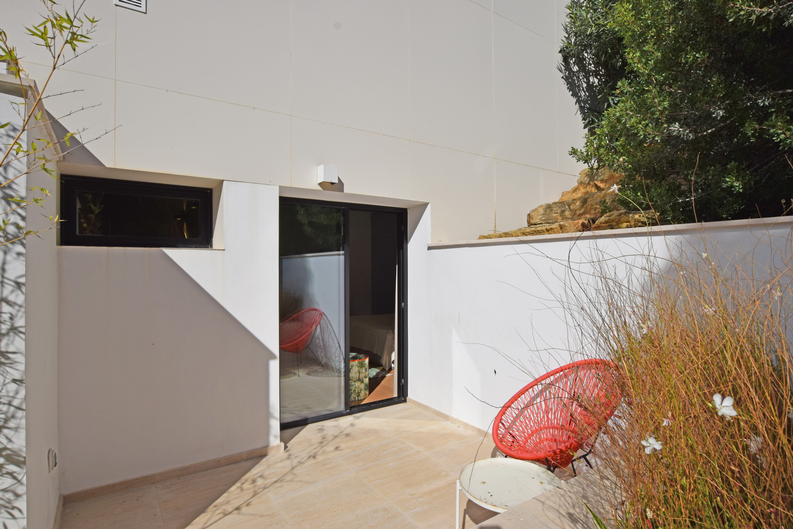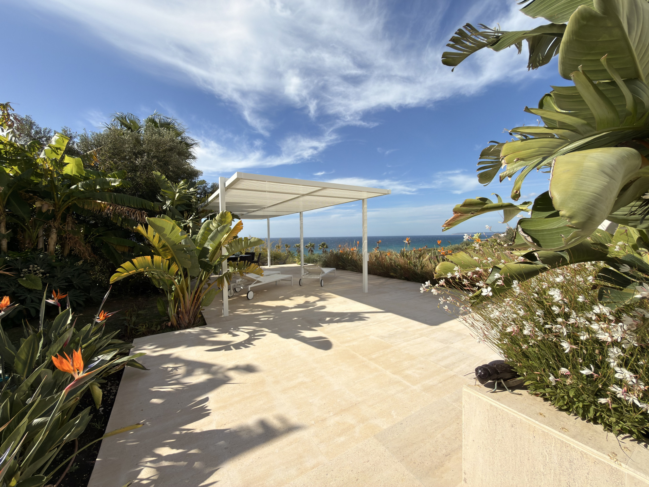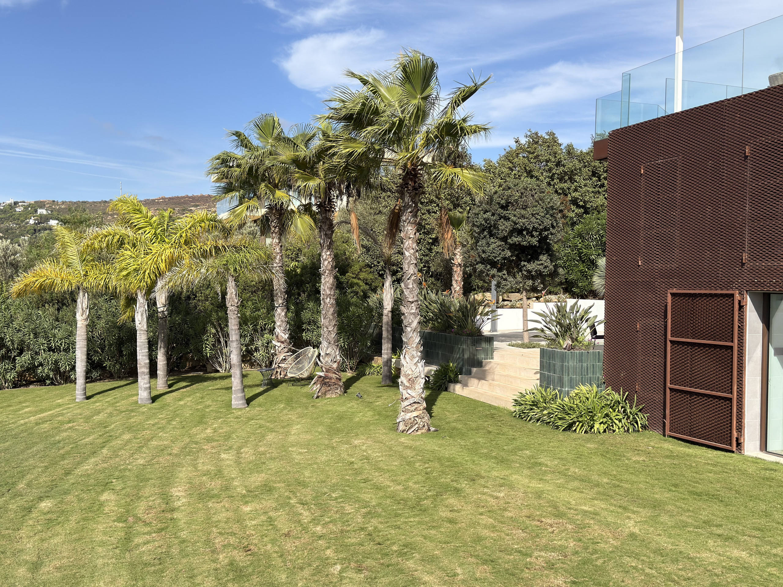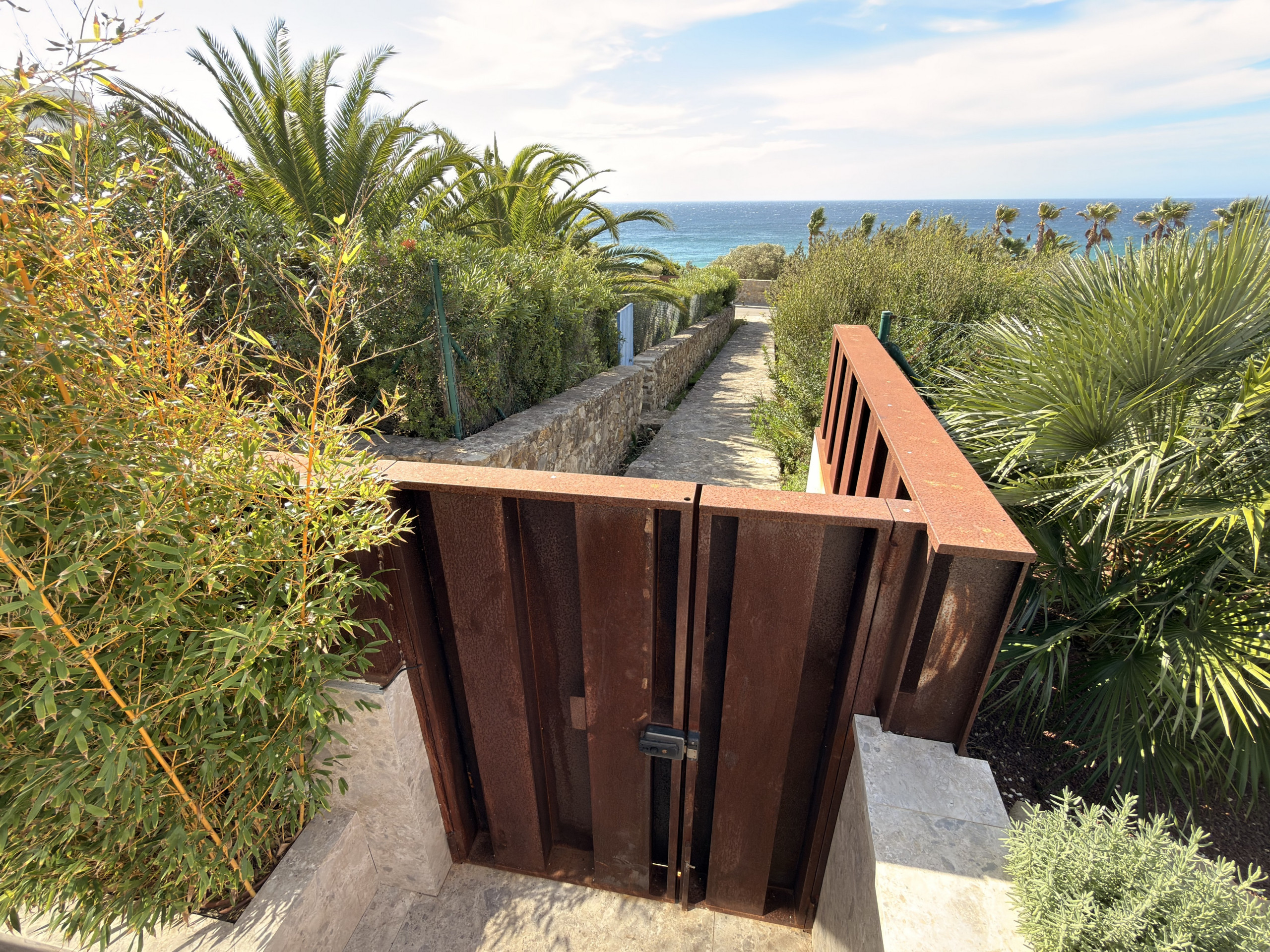 Este jardín de ensueño envuelve la villa en su planta inferior, perfectamente cuidado, con cenador exterior, zona de duchas exteriores y salida directa a un camino que accede a través de un camino a la playa.