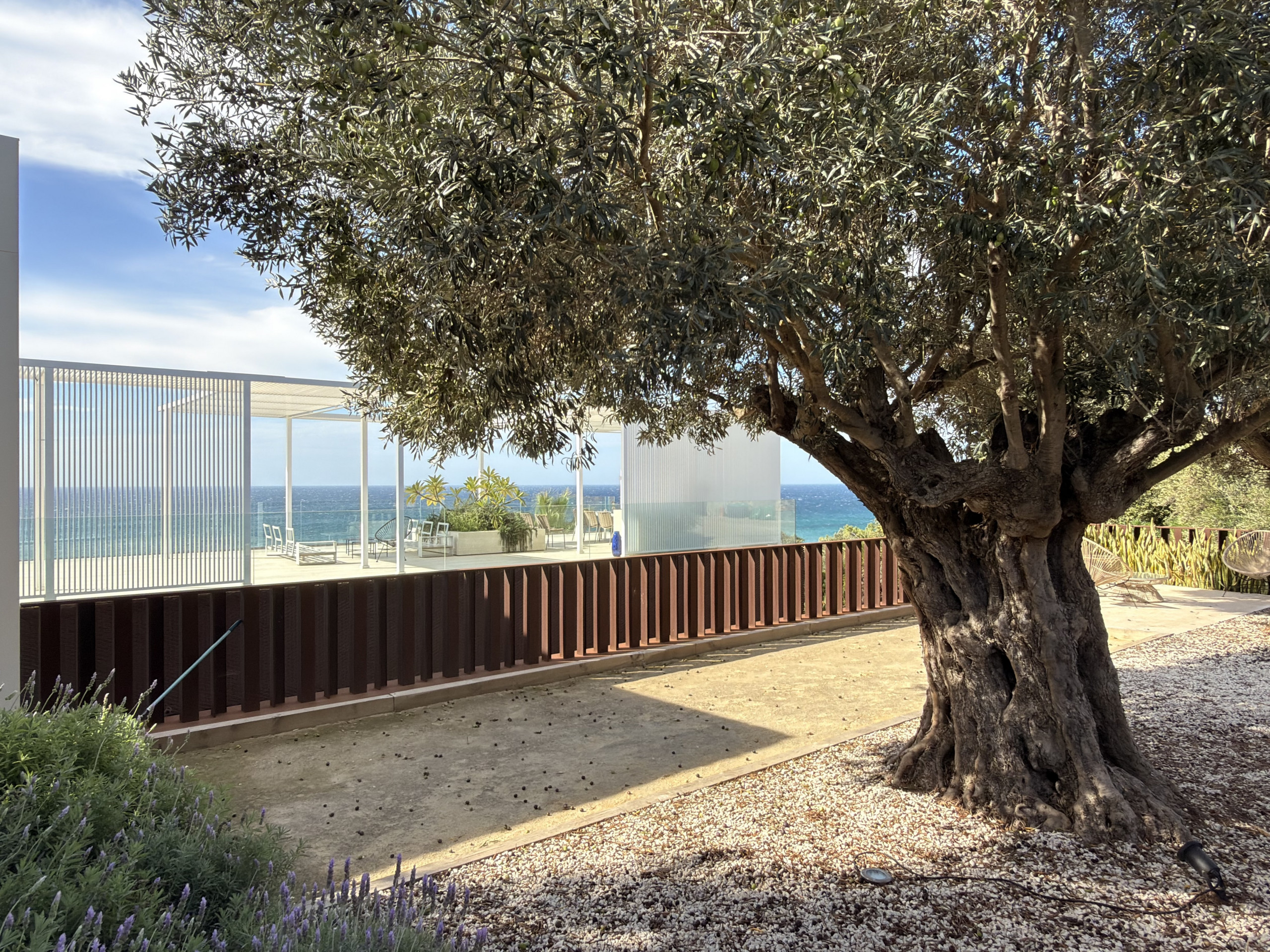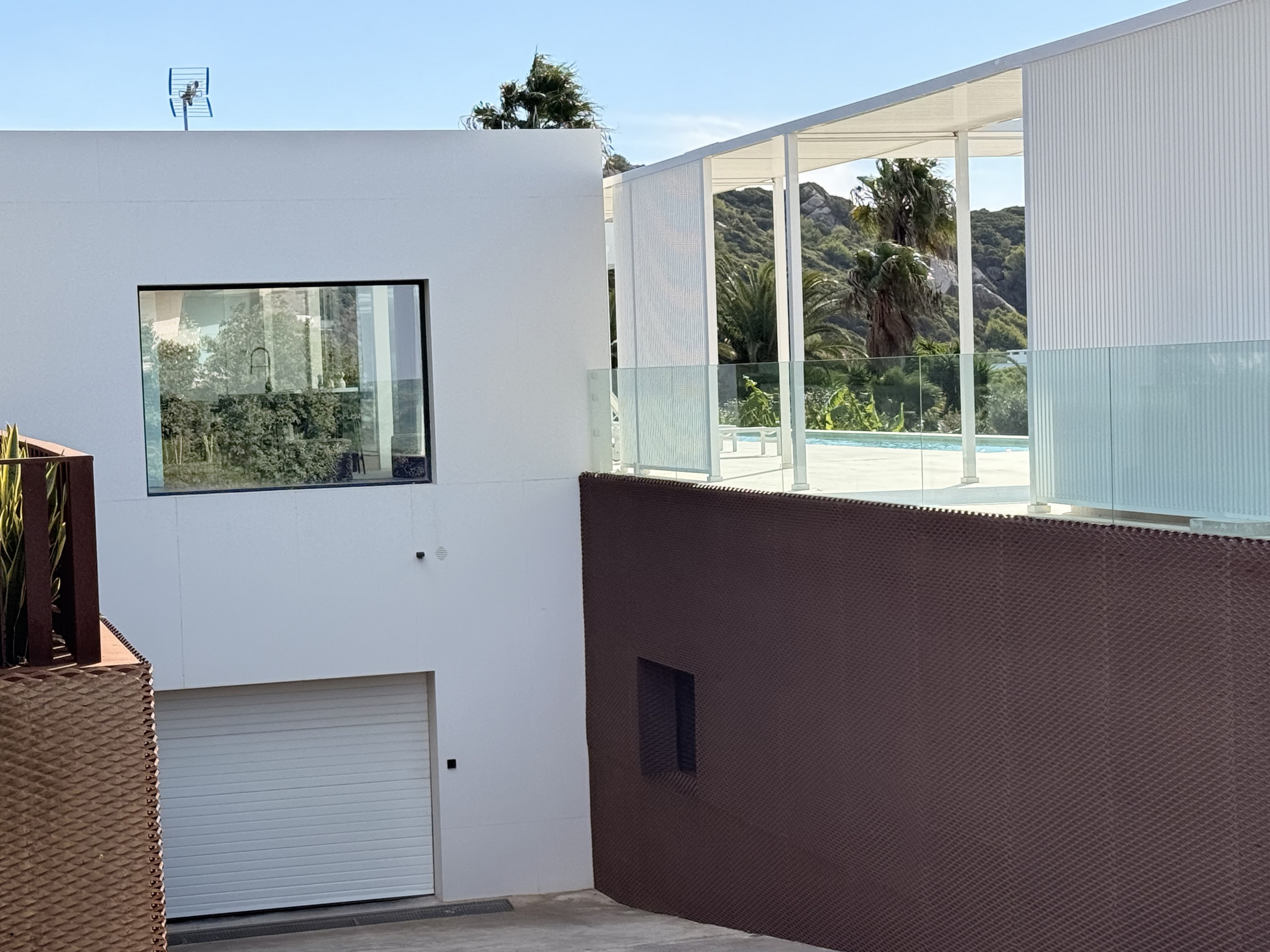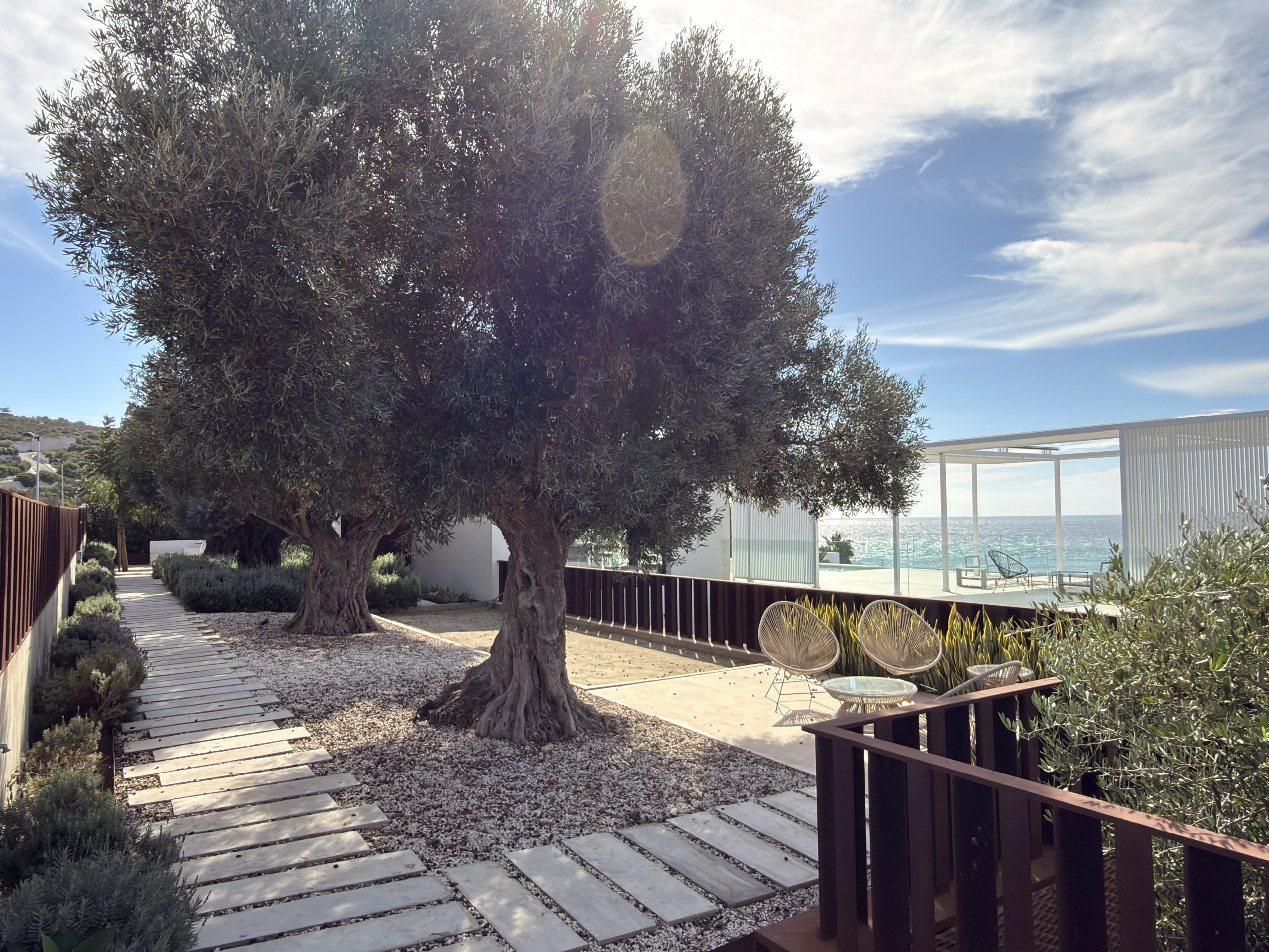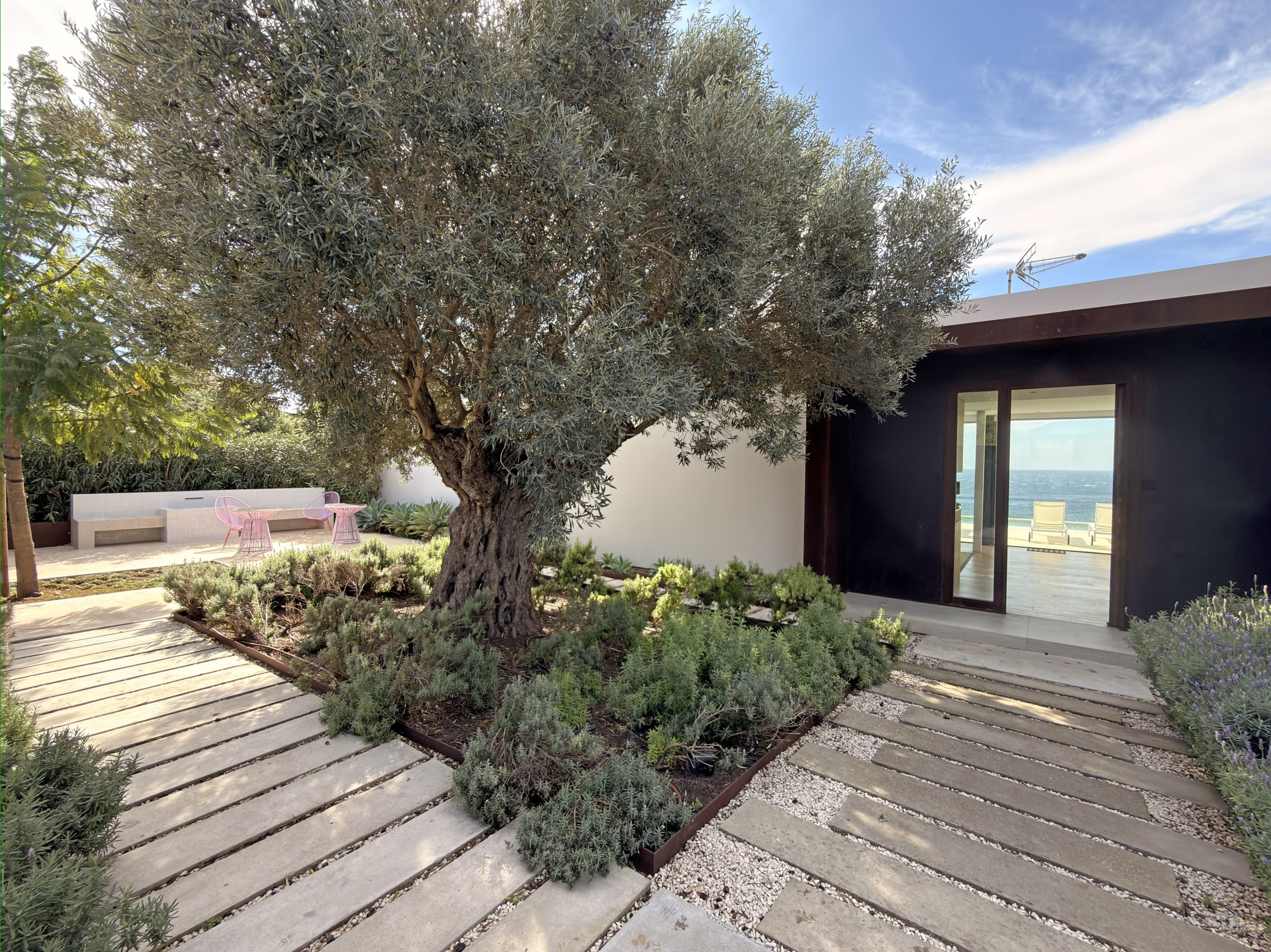Este jardín de ensueño envuelve la villa en su planta inferior, perfectamente cuidado, con cenador exterior, zona de duchas exteriores y salida directa a un camino que accede a través de un camino a la playa.