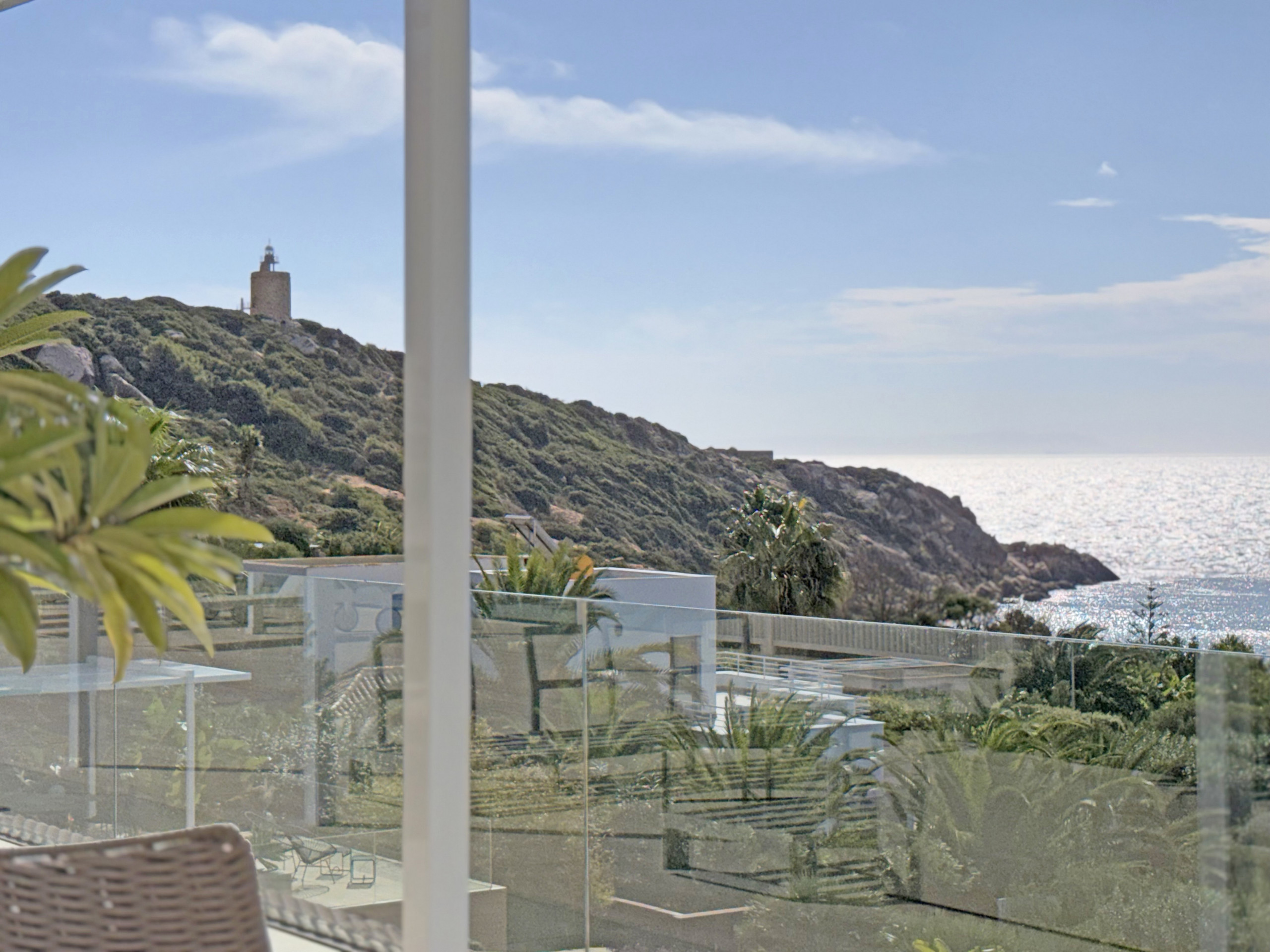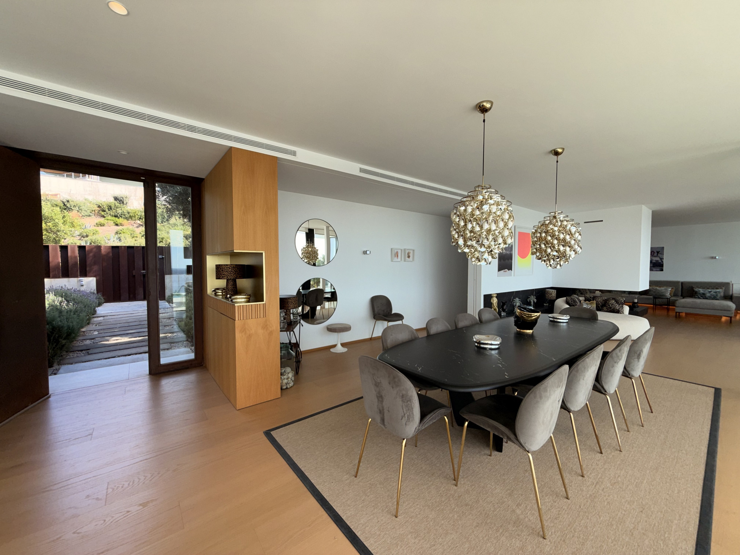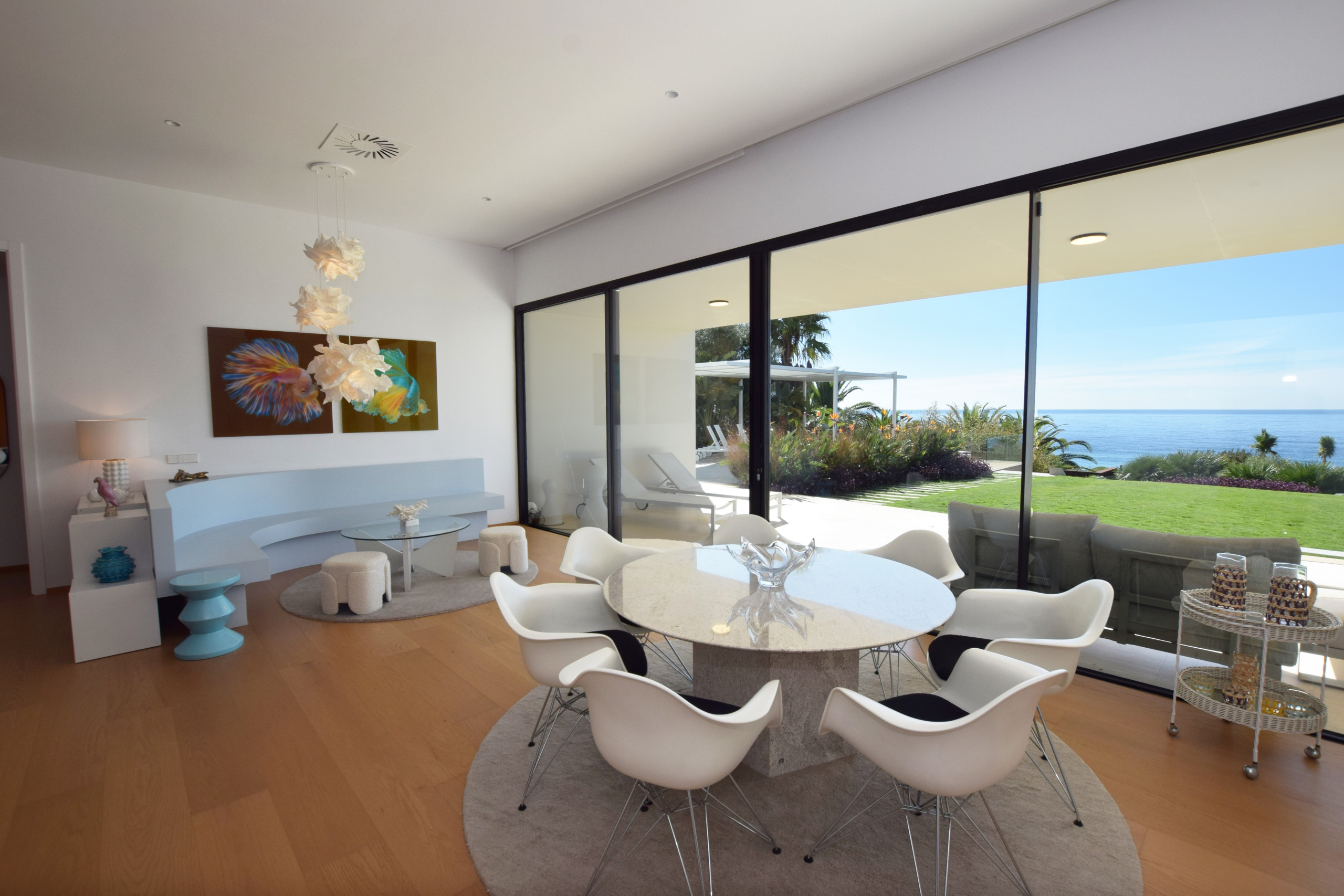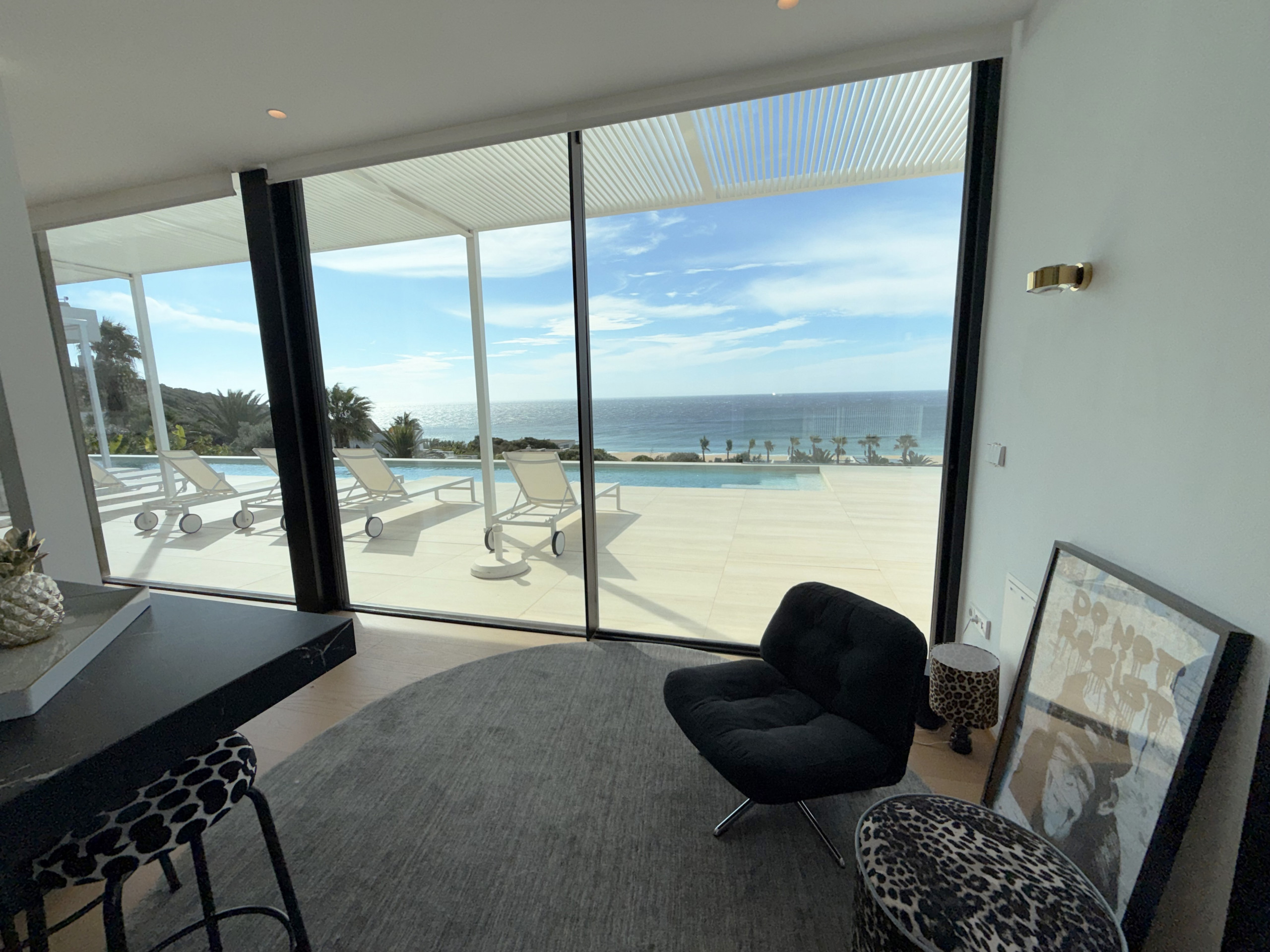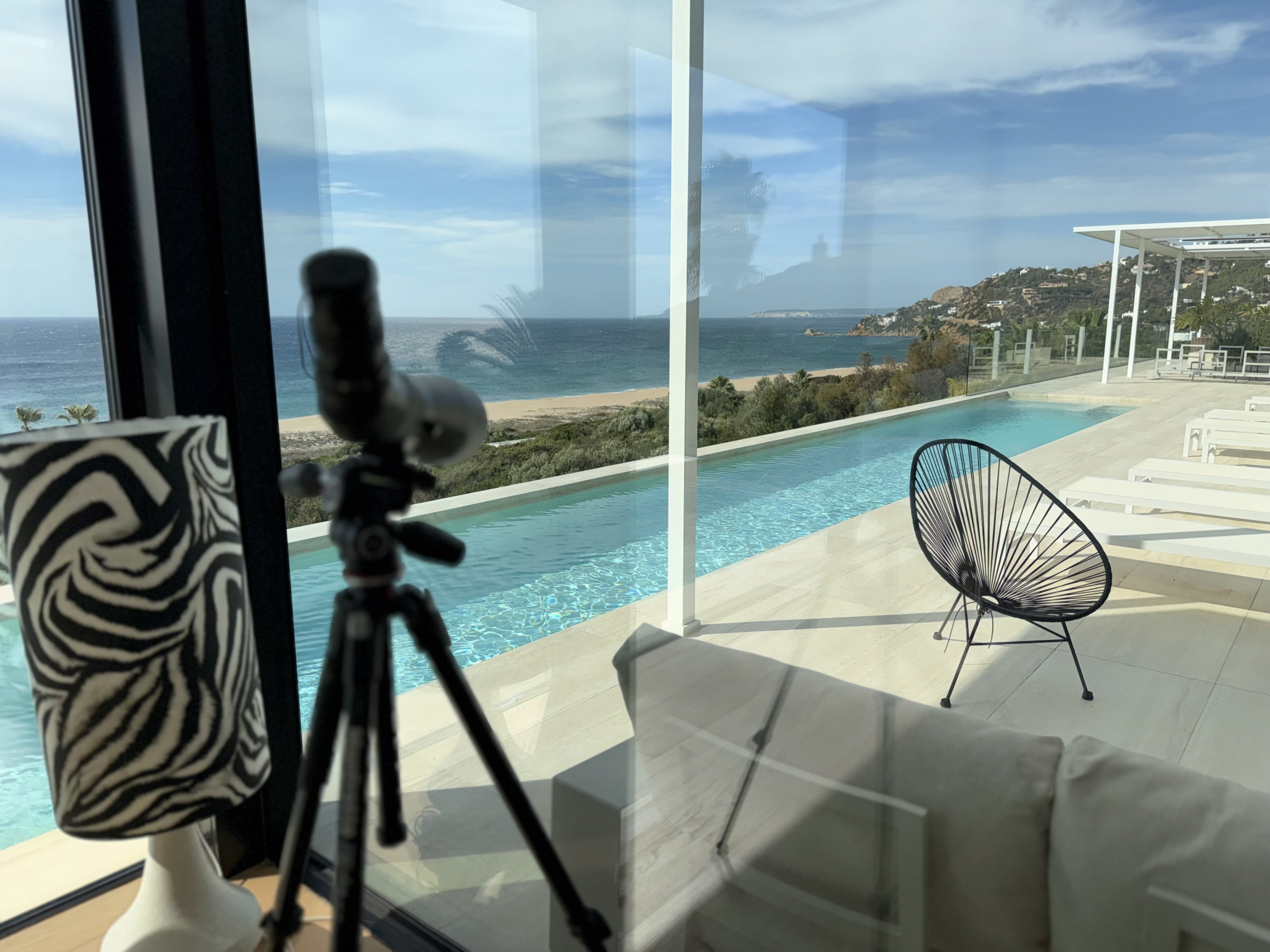 Zona de Comedor y Salón: Un amplio espacio para compartir, donde el comedor y el salón con biblioteca están orientados completamente hacia el mar, creando un ambiente de calma y lujo. Con la ayuda de un telescopio ubicado en esta zona, y un poco de suerte, también podrá observar ballenas, delfines y una gran variedad de especies de aves que viven y transitan por el Estrecho de Gibraltar y su parque natural.