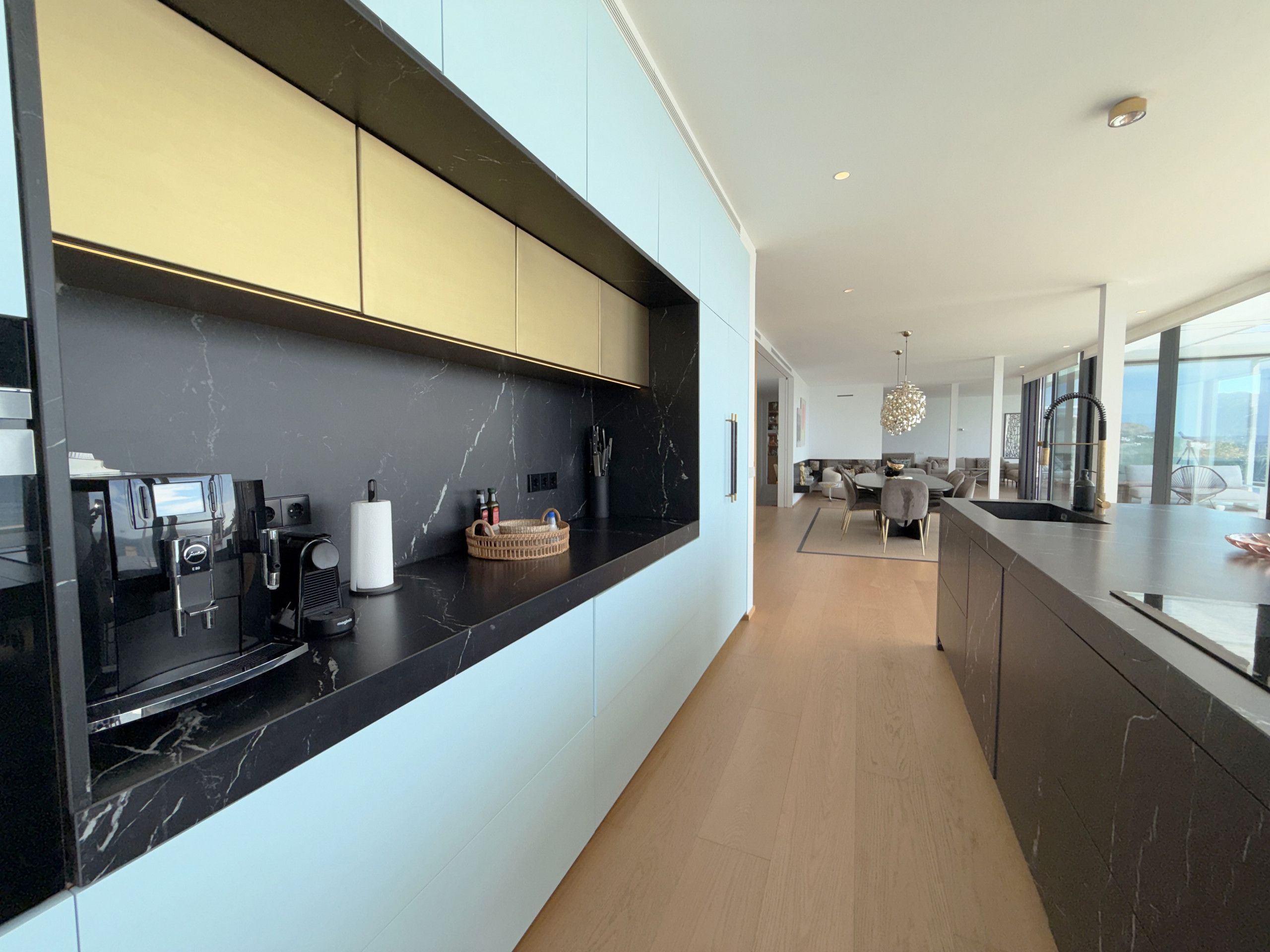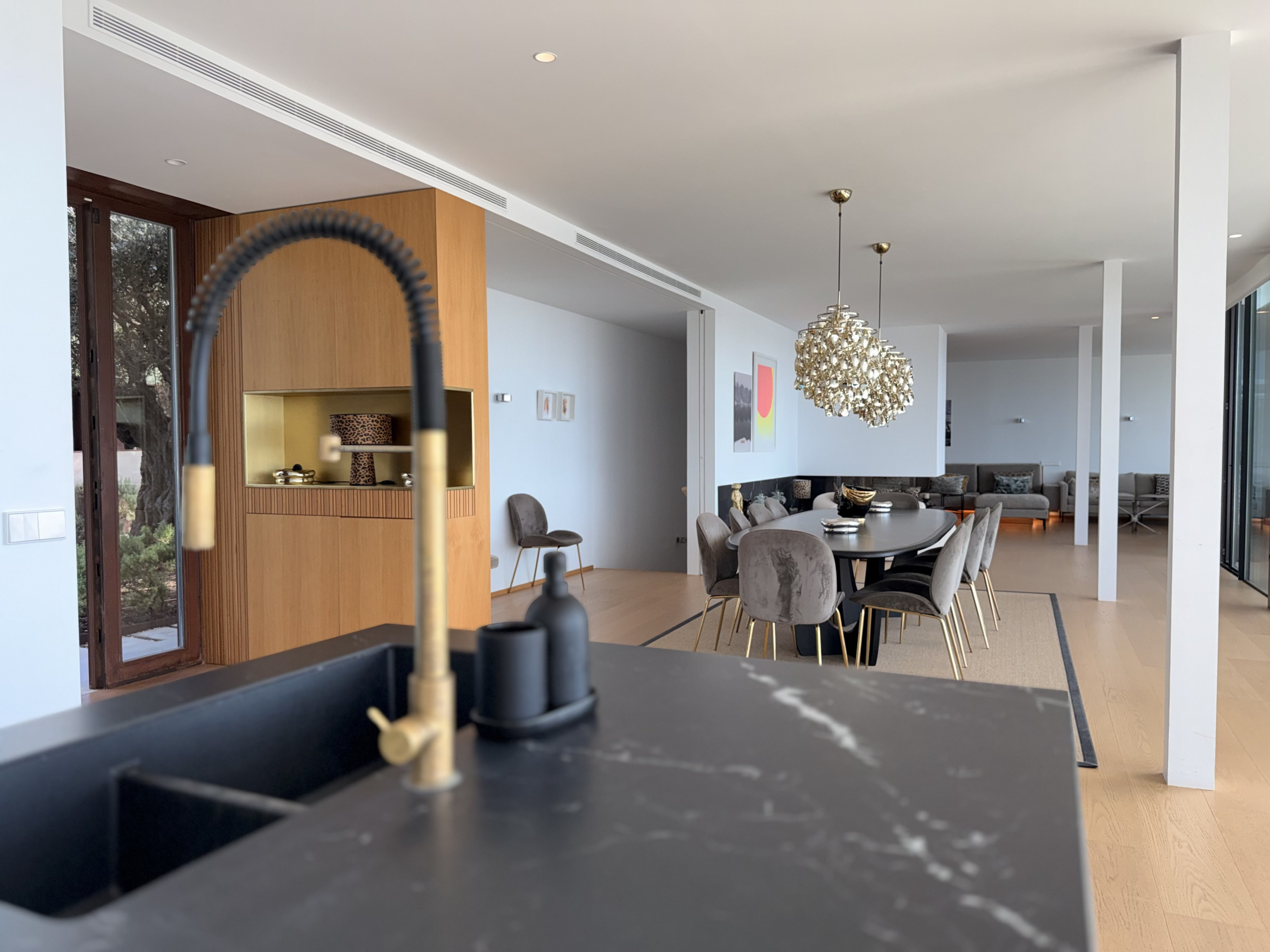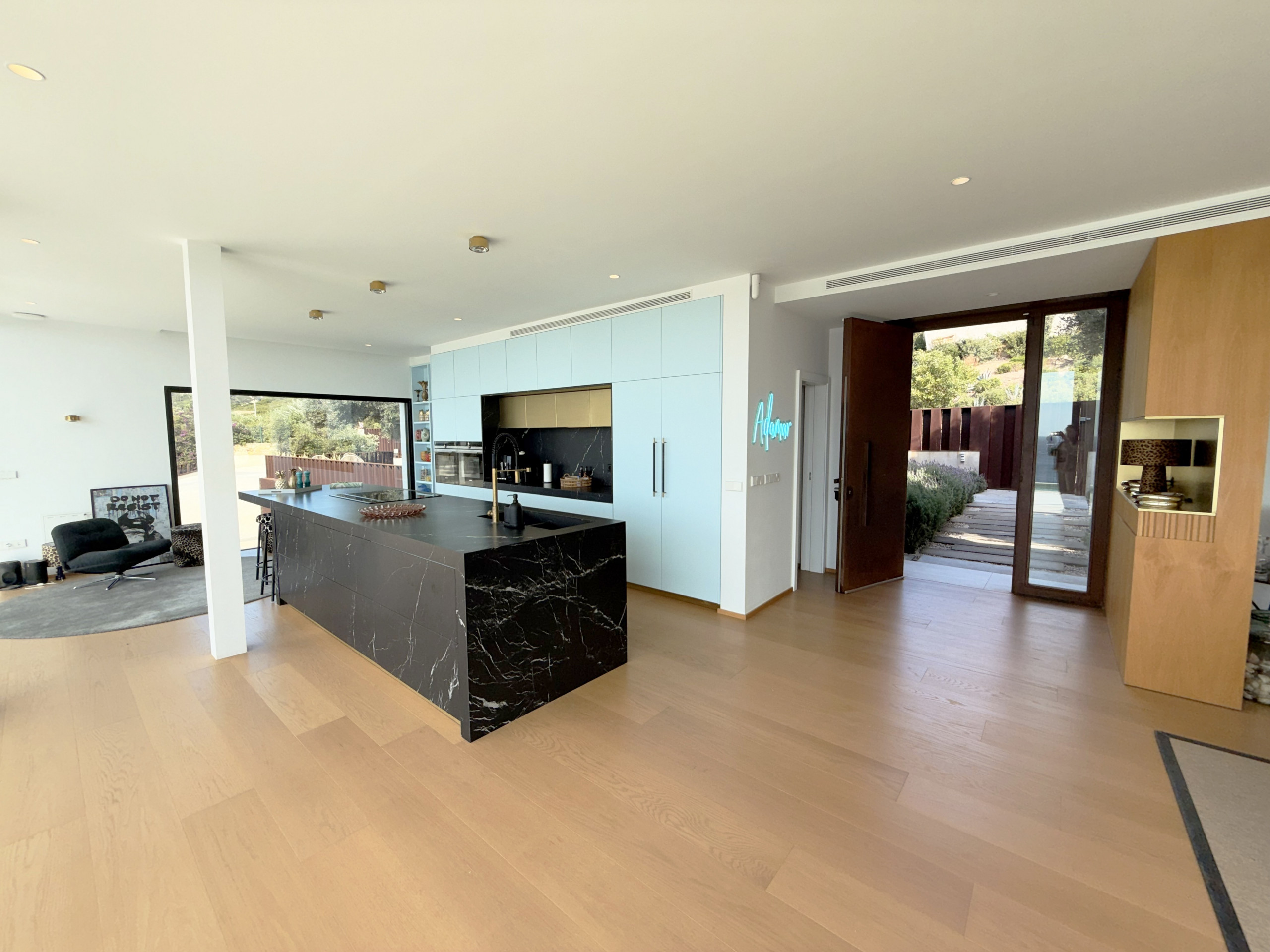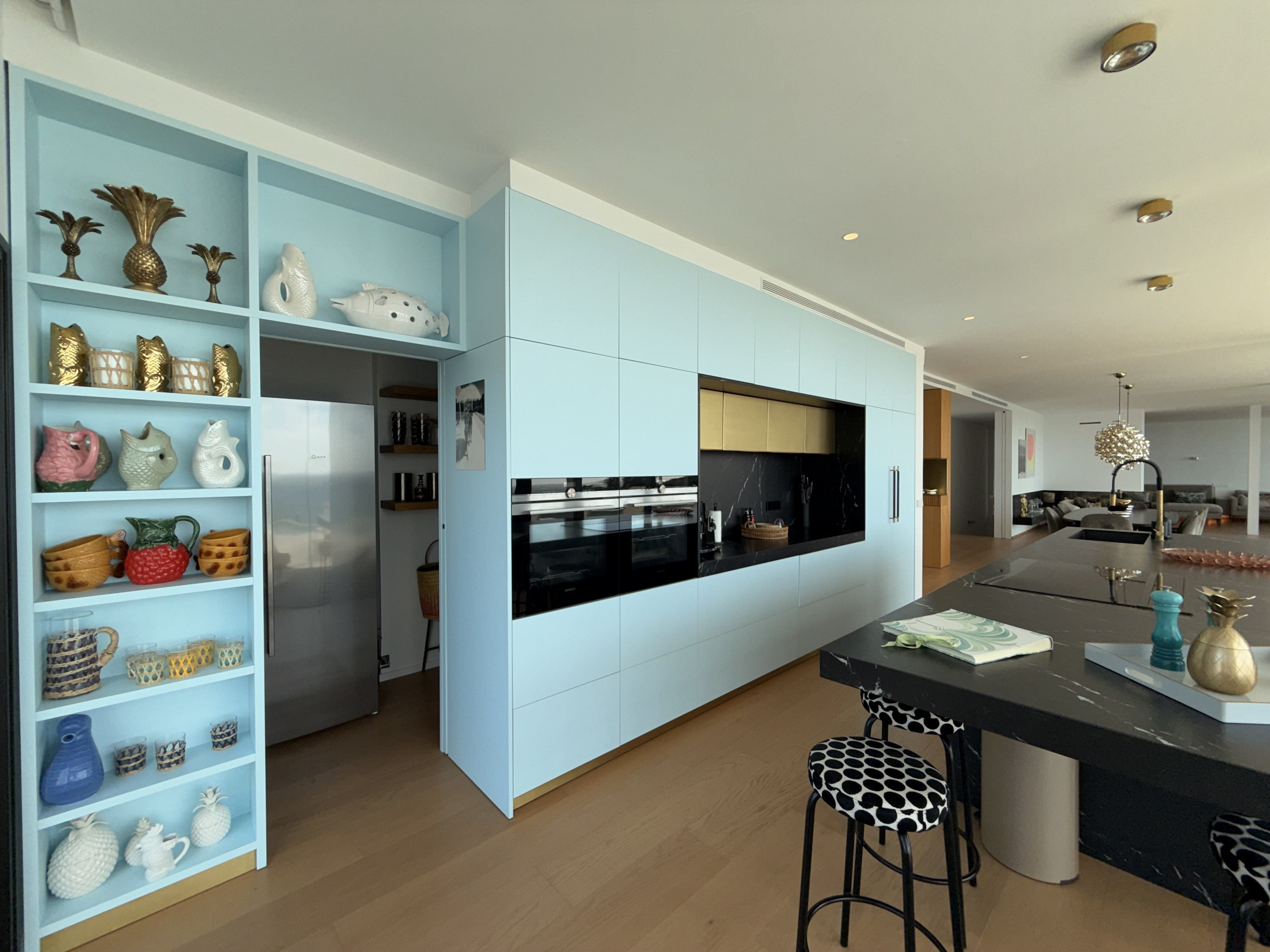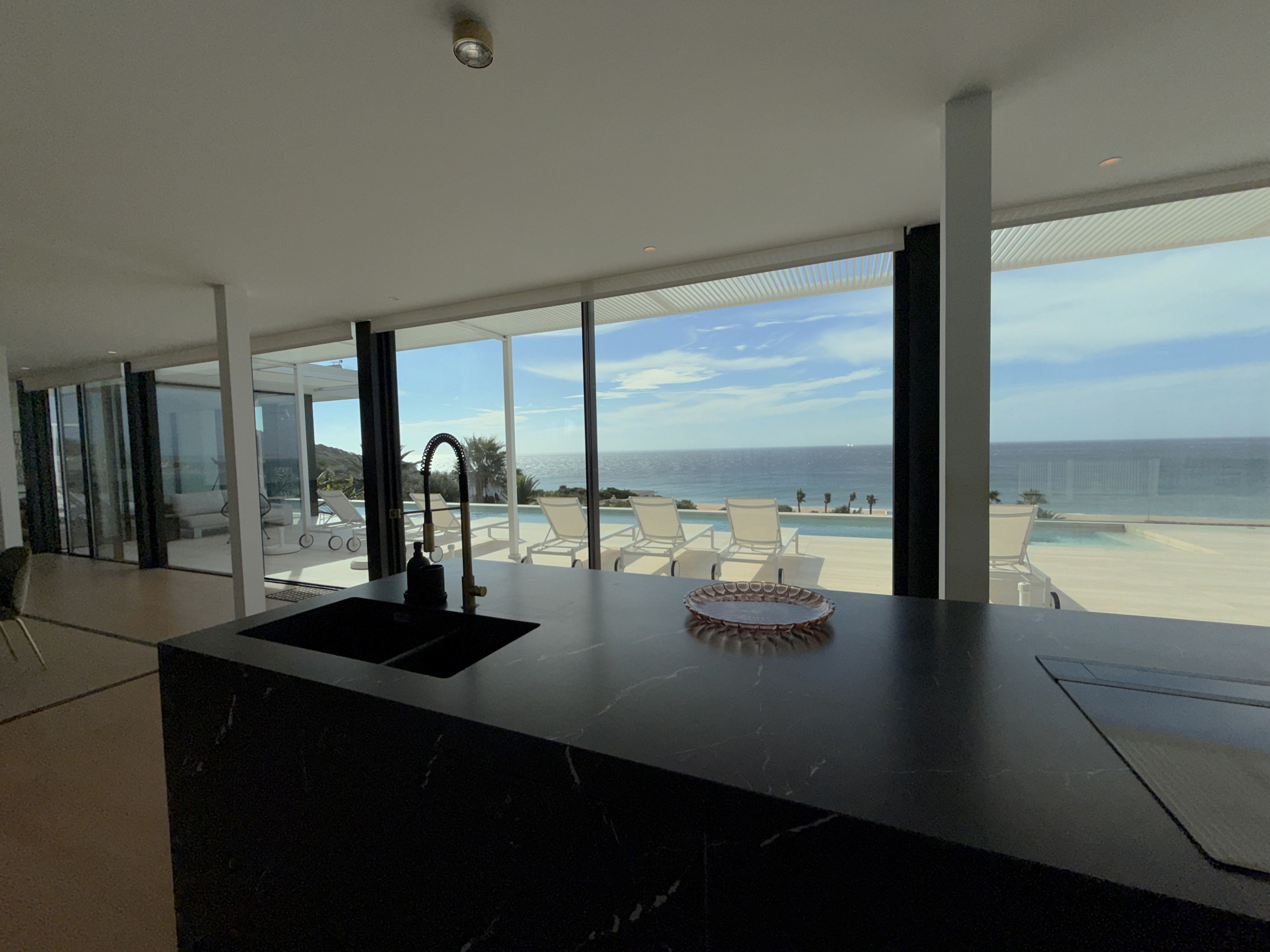 Cocina Gourmet: Con un diseño moderno, disfruta de la preparación de comidas con vistas panorámicas al mar y a la zona de piscina. Incluye una práctica despensa para tu comodidad.