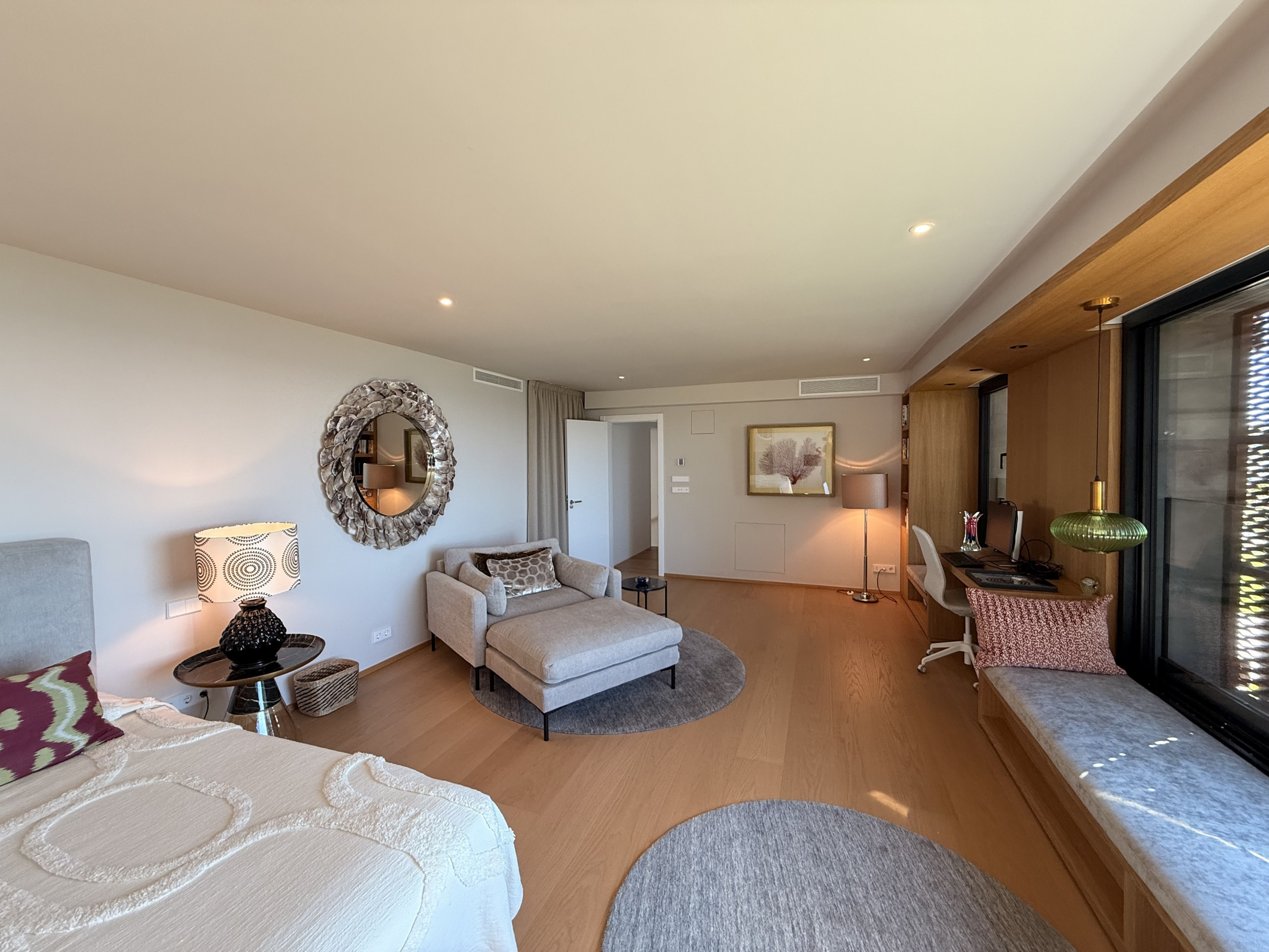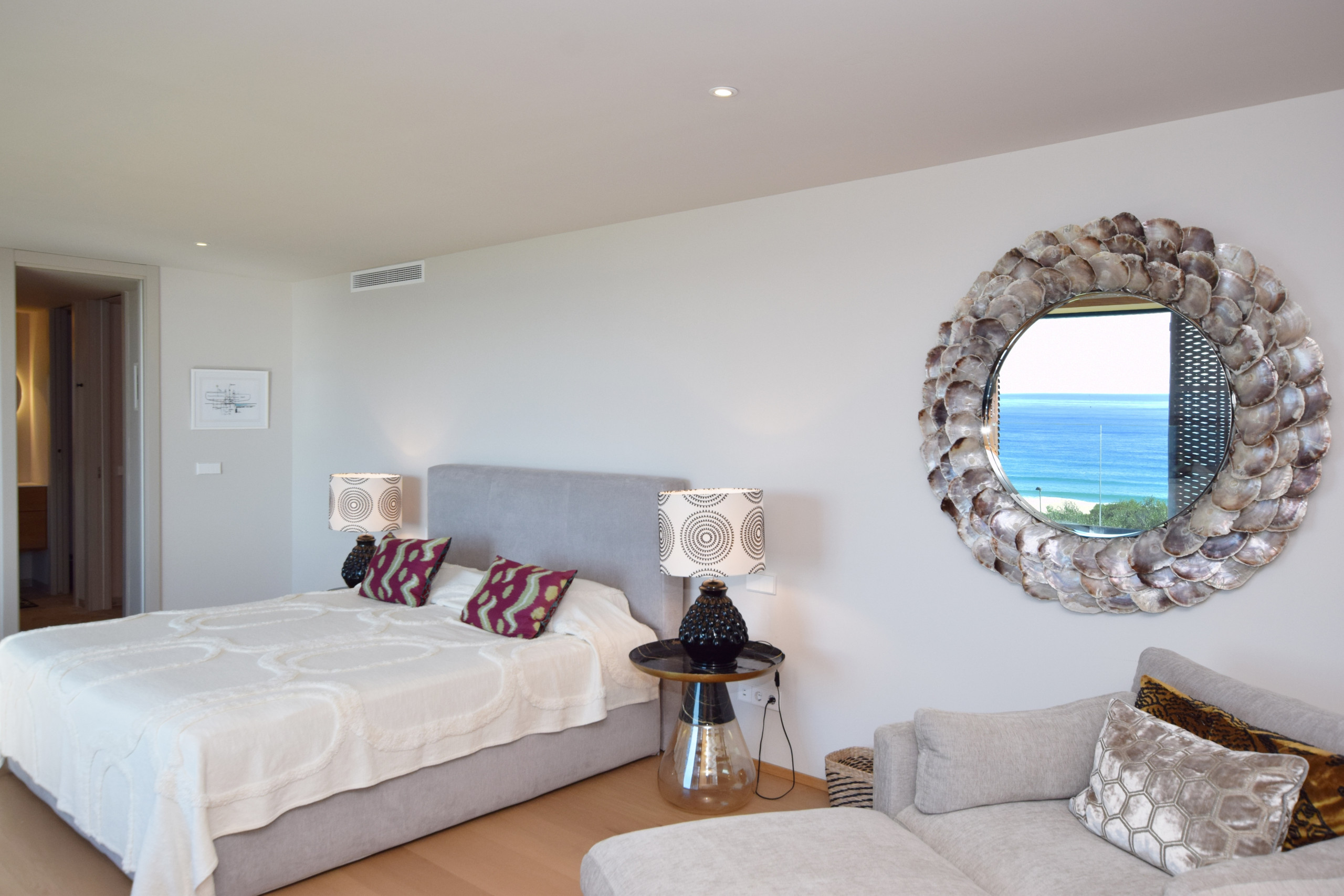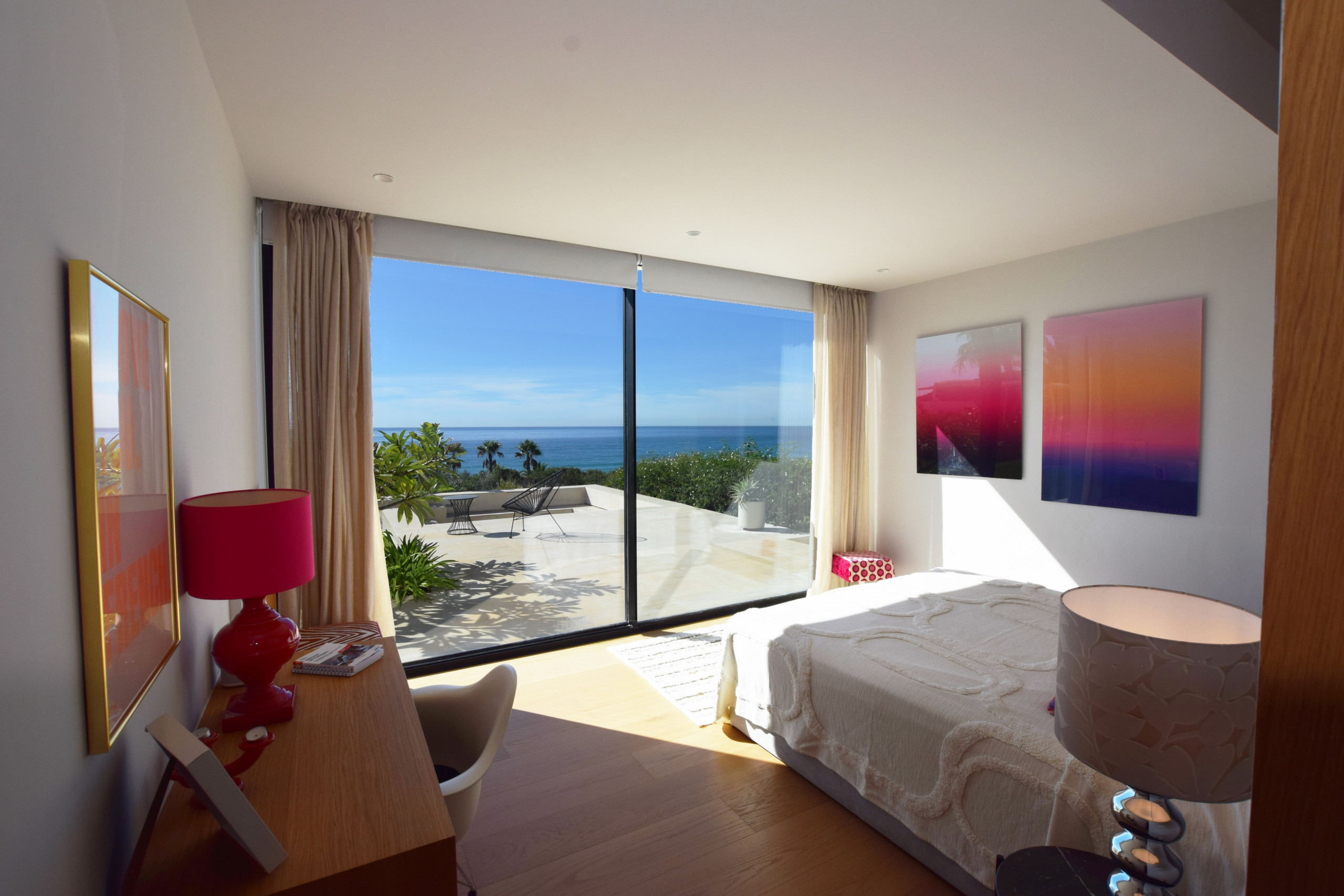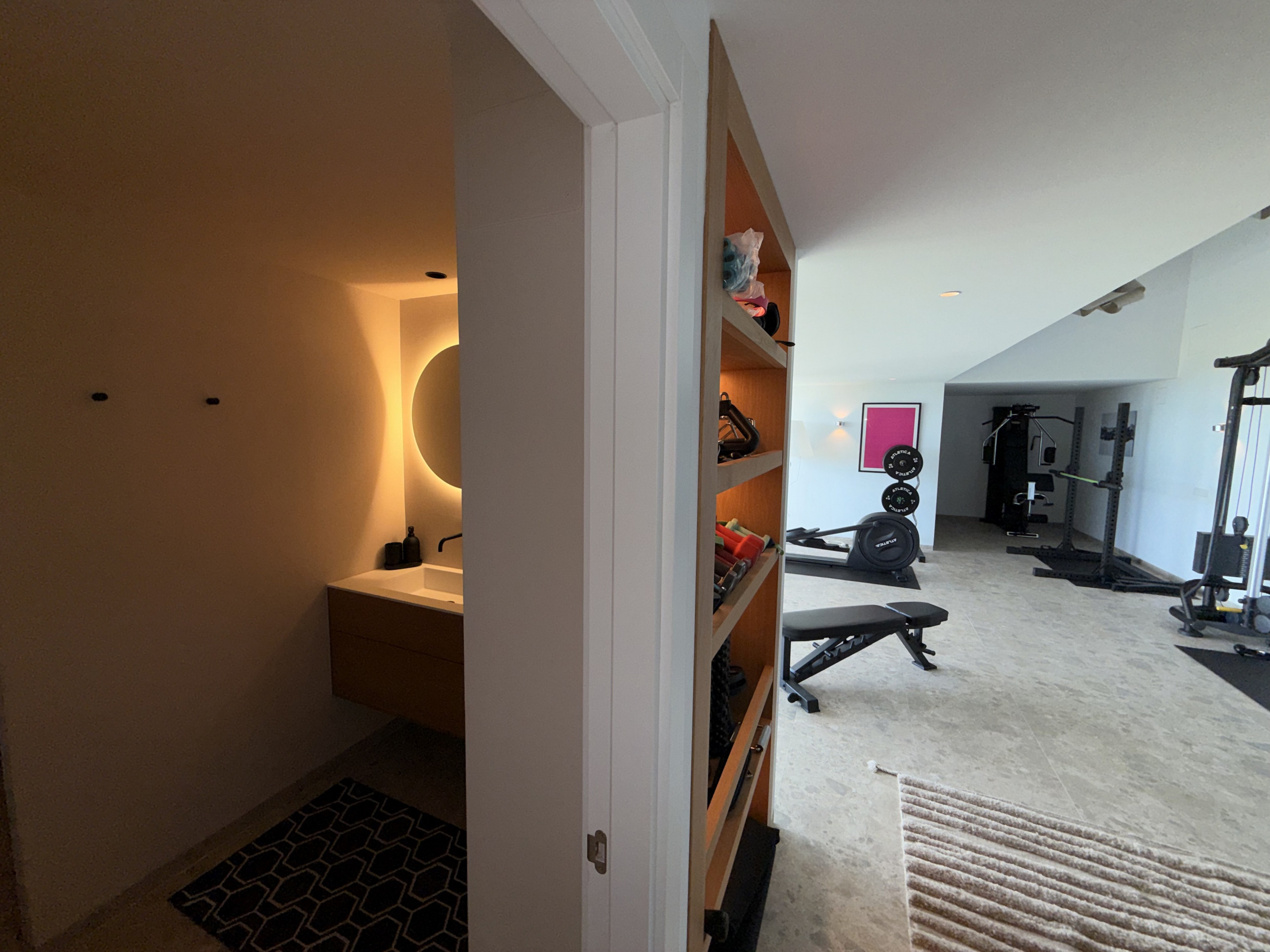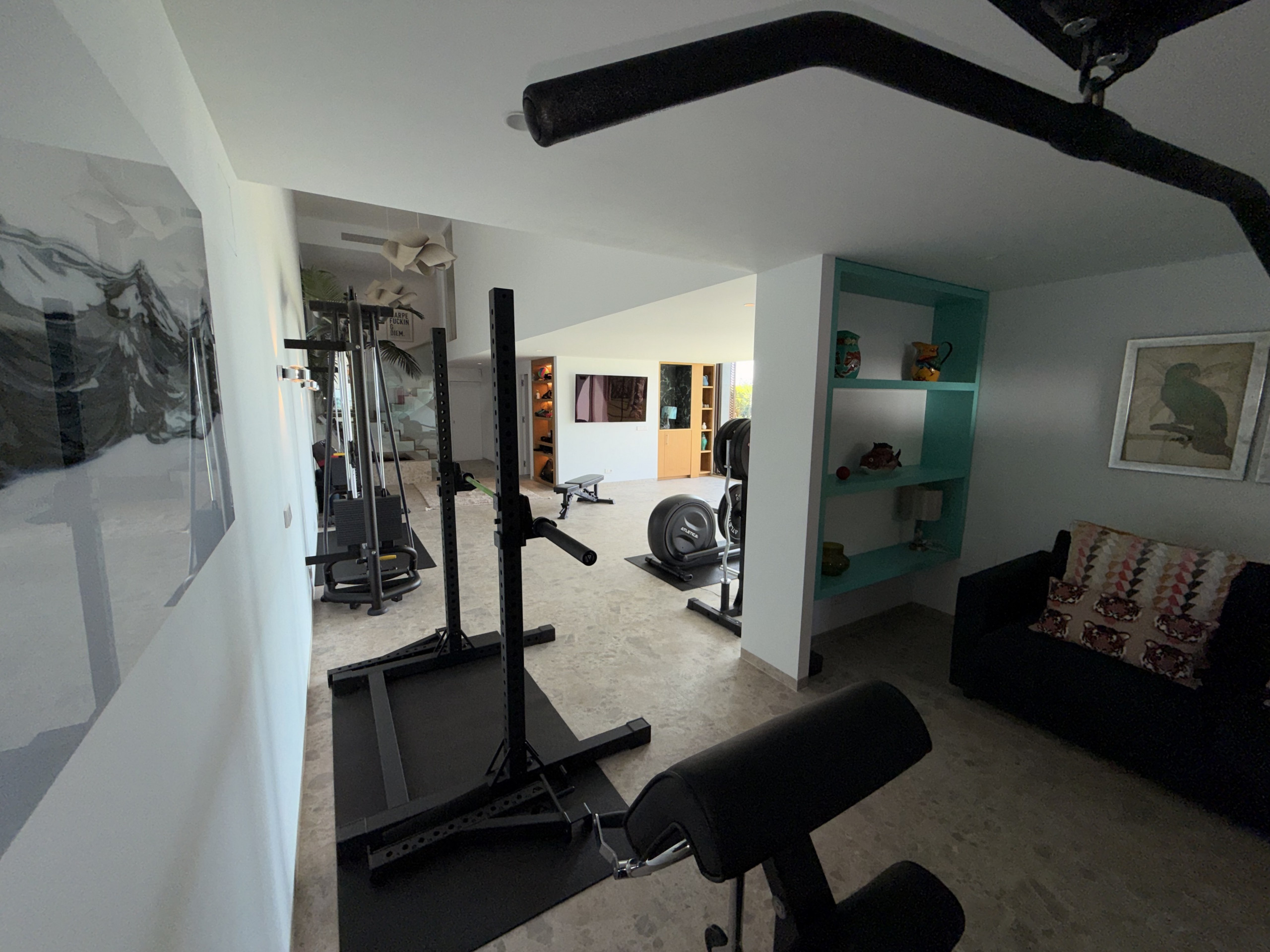 En el ala derecha al bajar la escalera, tras la zona de comedor y cocina, encontramos un pasillo que conduce a 2 dormitorios, que cuentan justo frente a los dormitorios con 2 baños con ducha, el pasillo finaliza en un espacio dedicado a la salud: un gimnasio totalmente equipado con máquinas de alta calidad y accesorios. Este espacio de bienestar incluye un lujoso baño con dos duchas y una gran sauna con vistas al mar. Junto al gimnasio, a través de unas escaleras llegamos al Dormitorio Principal, un refugio privado diseñado para el máximo descanso, el cual incluye área de trabajo, baño con ducha, bañera, vestidor y zona wc.