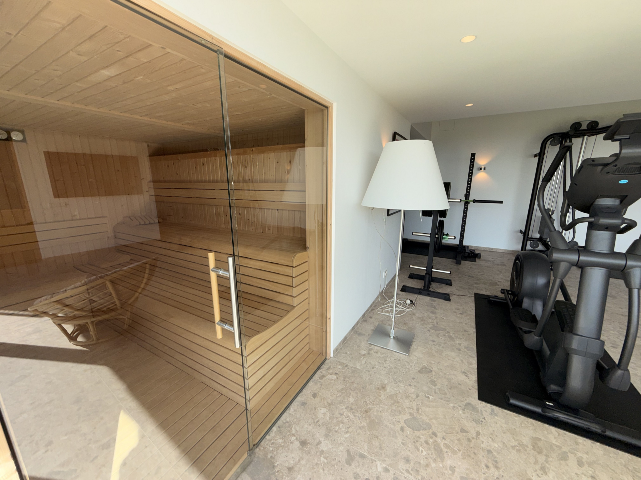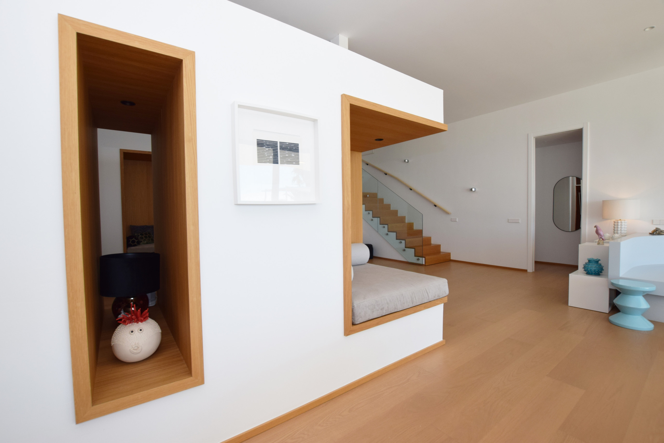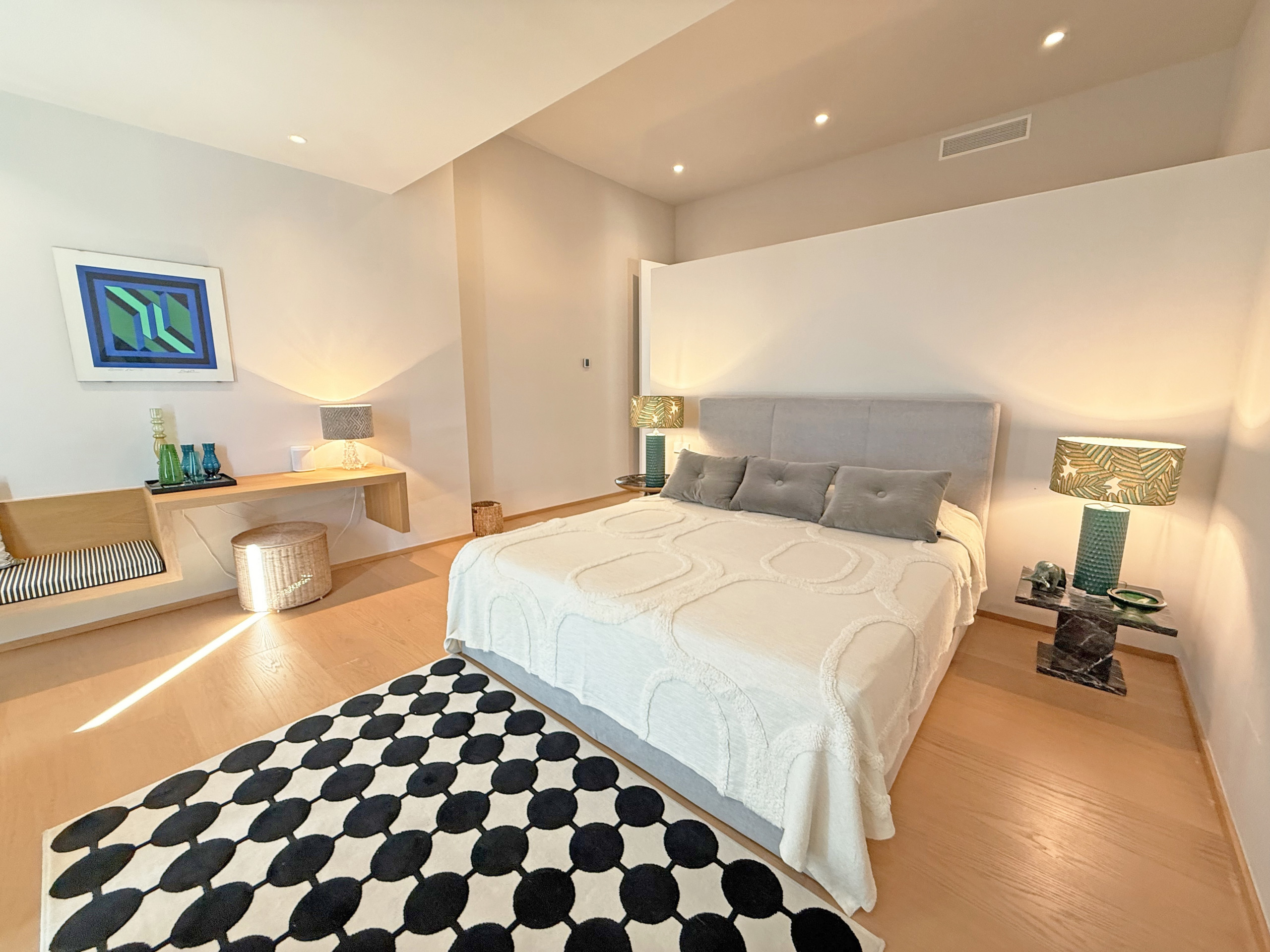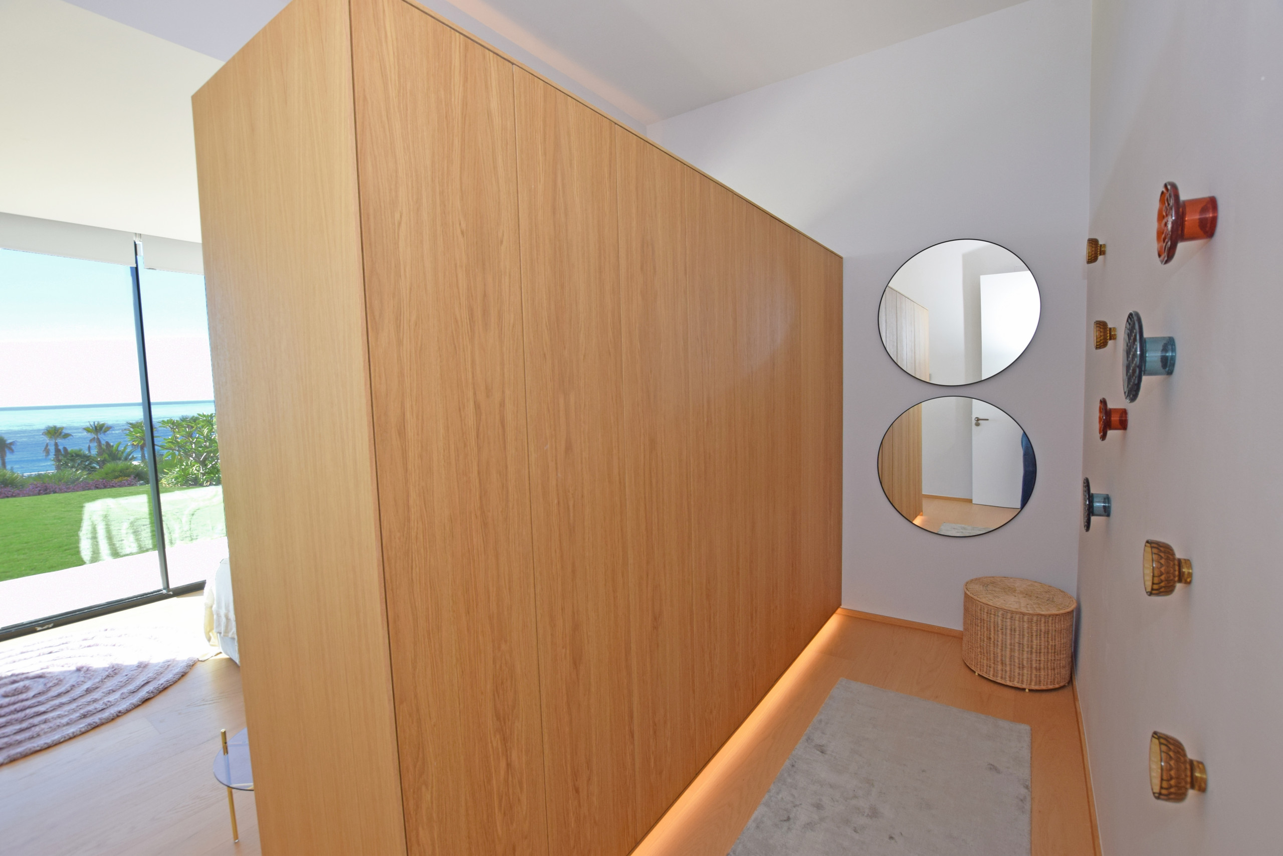 En el ala derecha al bajar la escalera, tras la zona de comedor y cocina, encontramos un pasillo que conduce a 2 dormitorios, que cuentan justo frente a los dormitorios con 2 baños con ducha, el pasillo finaliza en un espacio dedicado a la salud: un gimnasio totalmente equipado con máquinas de alta calidad y accesorios. Este espacio de bienestar incluye un lujoso baño con dos duchas y una gran sauna con vistas al mar. Junto al gimnasio, a través de unas escaleras llegamos al Dormitorio Principal, un refugio privado diseñado para el máximo descanso, el cual incluye área de trabajo, baño con ducha, bañera, vestidor y zona wc.