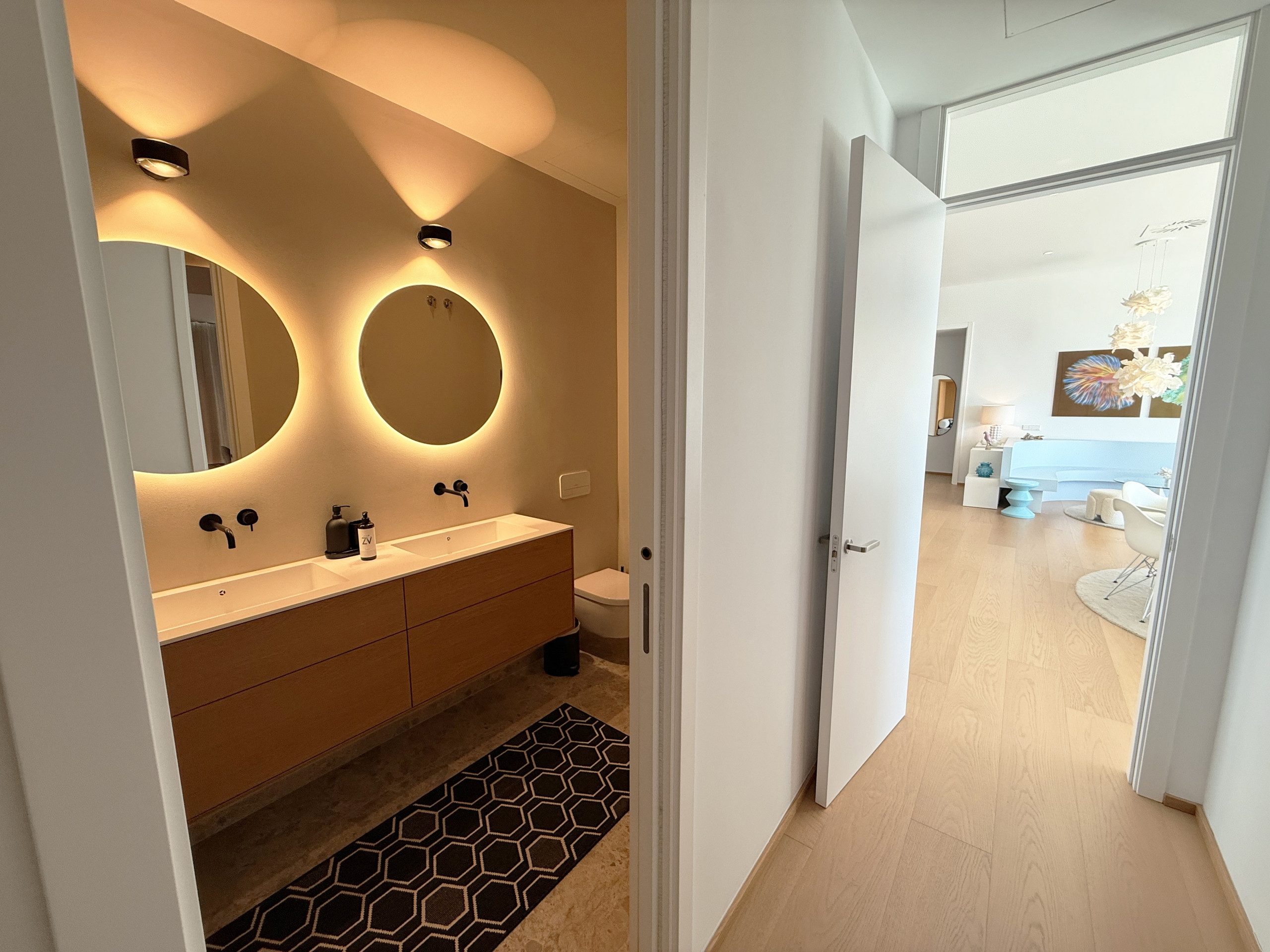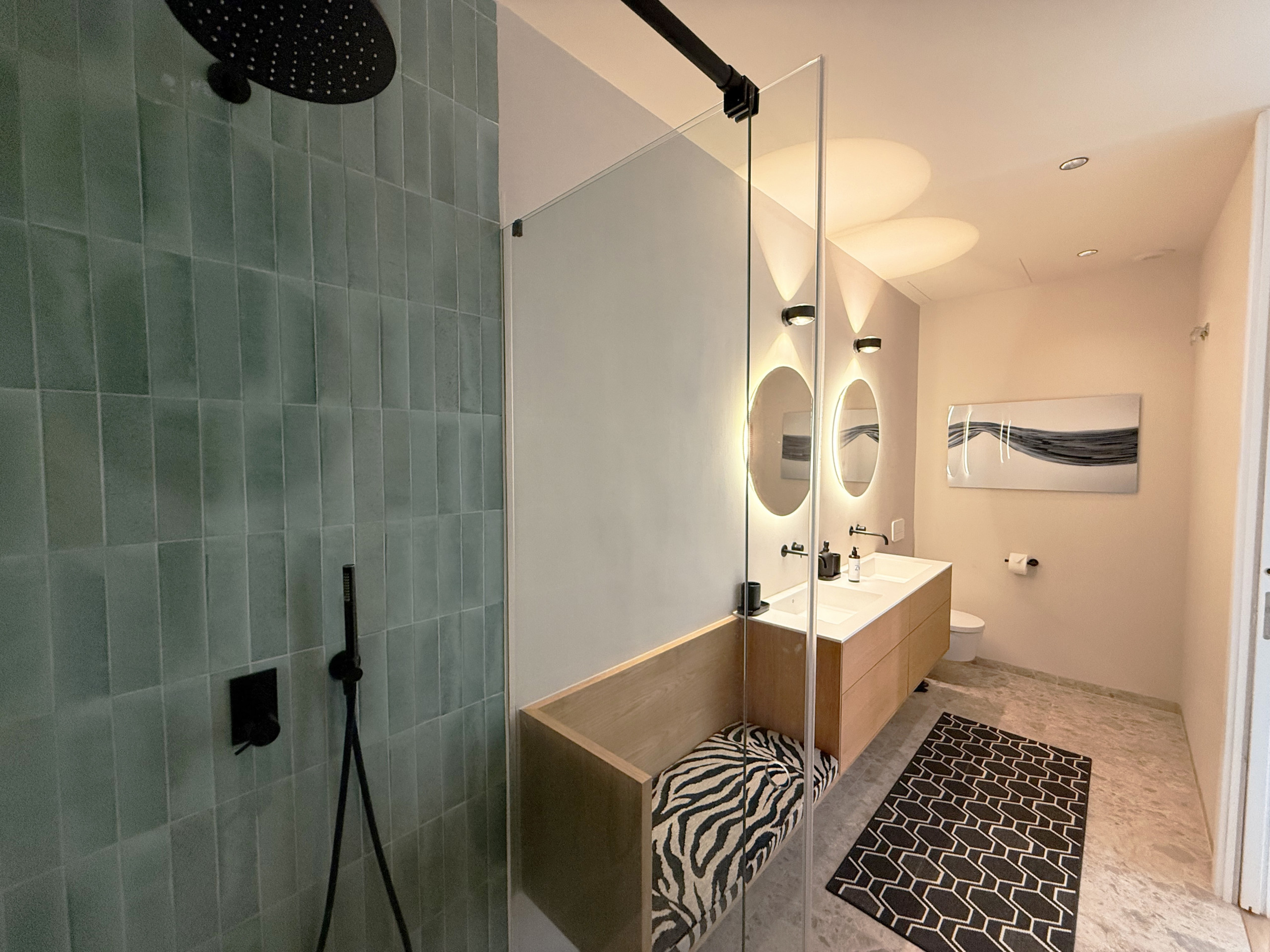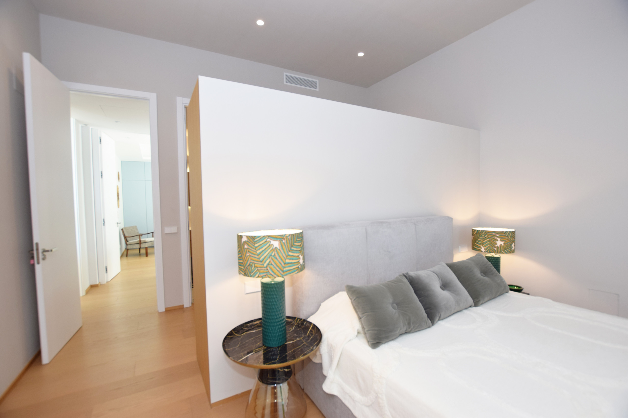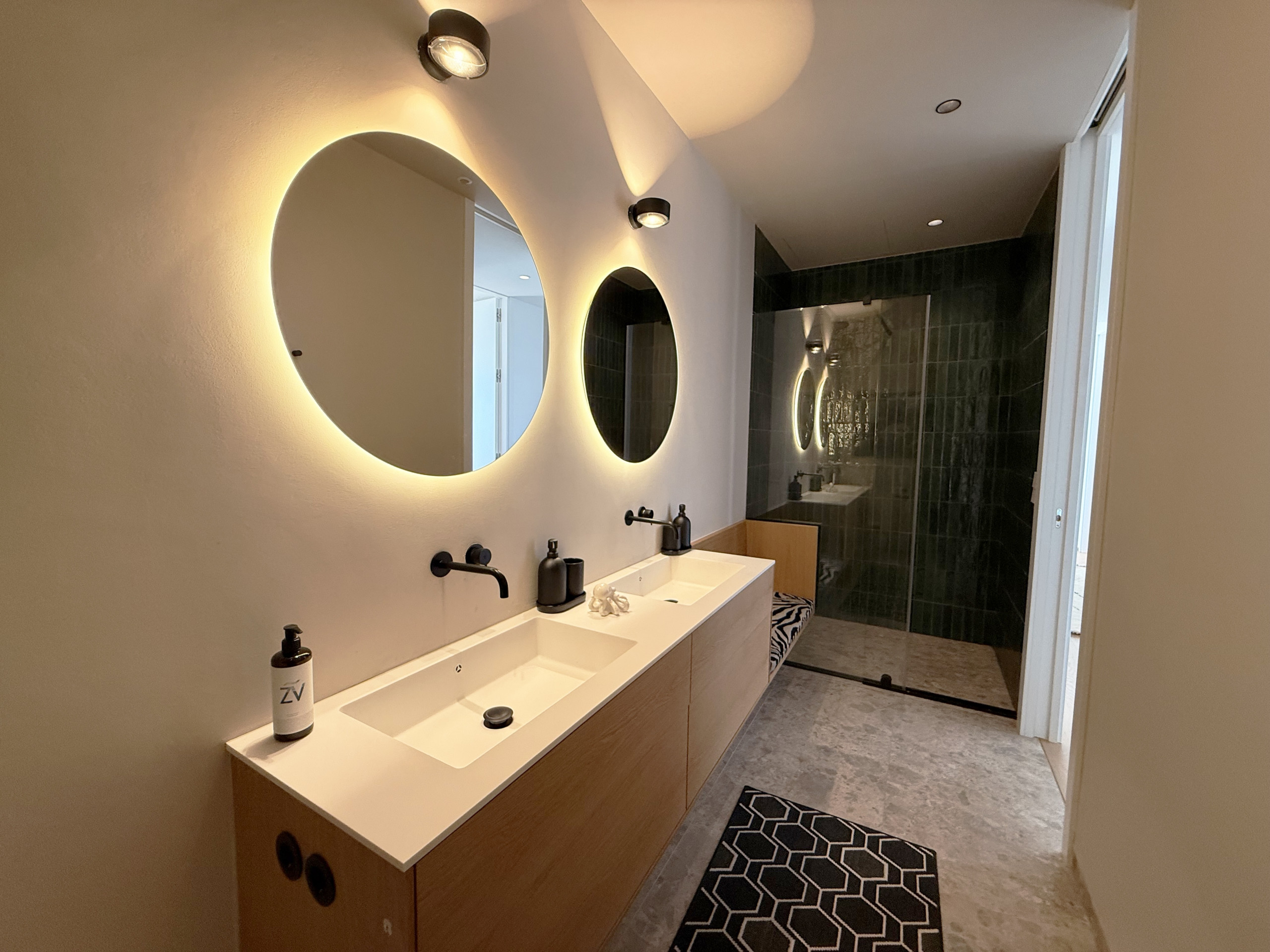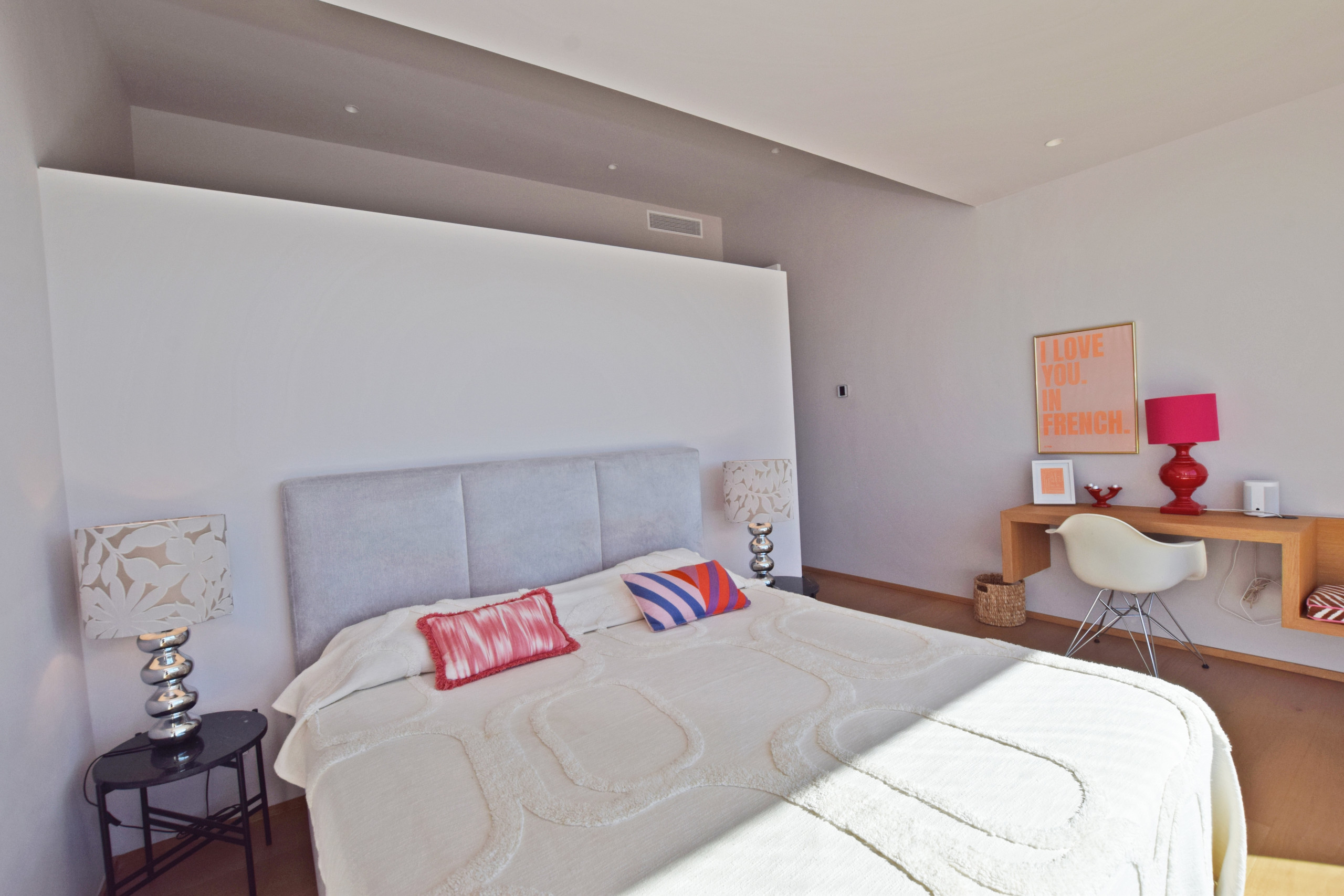 En el ala derecha al bajar la escalera, tras la zona de comedor y cocina, encontramos un pasillo que conduce a 2 dormitorios, que cuentan justo frente a los dormitorios con 2 baños con ducha, el pasillo finaliza en un espacio dedicado a la salud: un gimnasio totalmente equipado con máquinas de alta calidad y accesorios. Este espacio de bienestar incluye un lujoso baño con dos duchas y una gran sauna con vistas al mar. Junto al gimnasio, a través de unas escaleras llegamos al Dormitorio Principal, un refugio privado diseñado para el máximo descanso, el cual incluye área de trabajo, baño con ducha, bañera, vestidor y zona wc.
