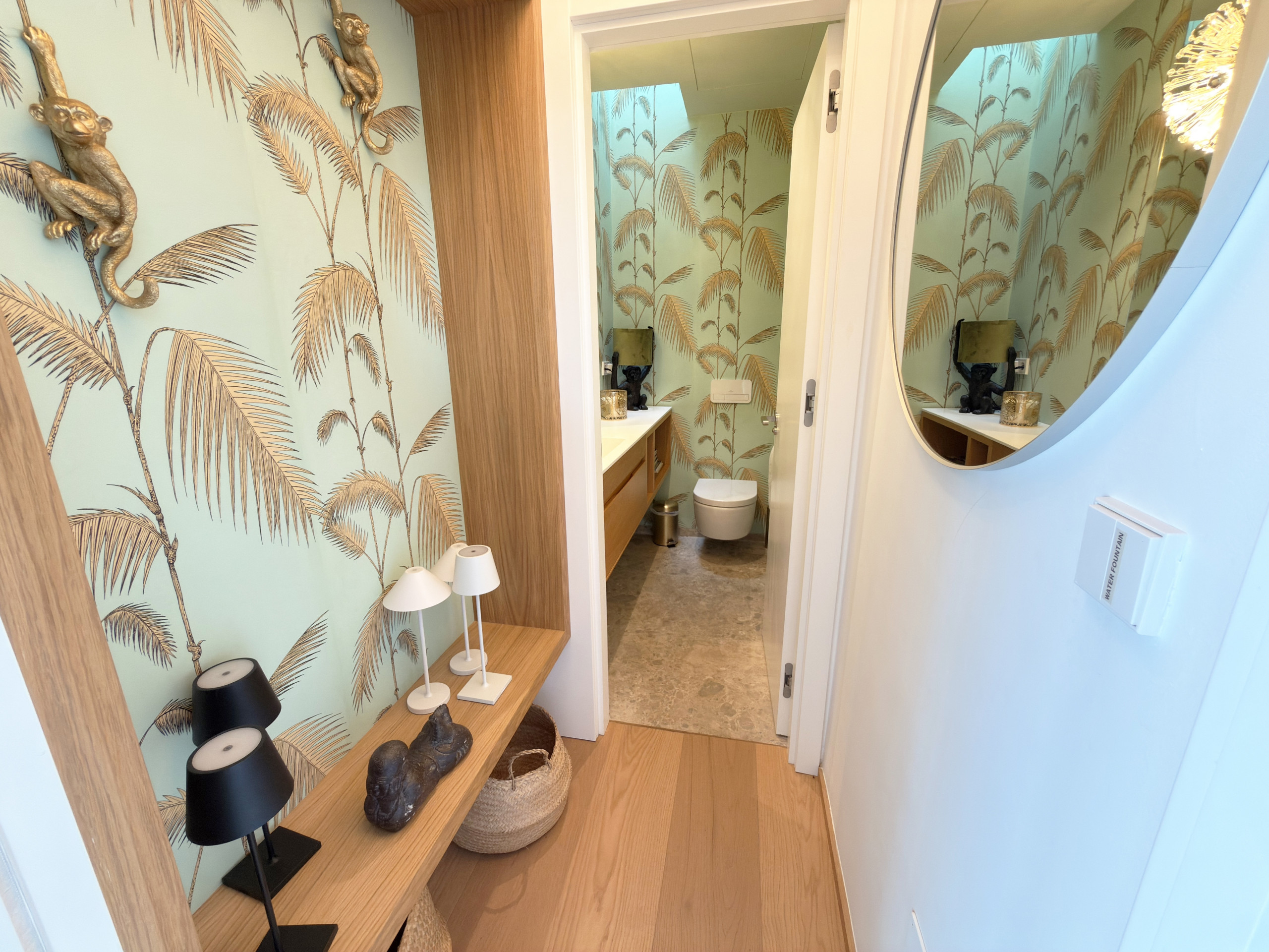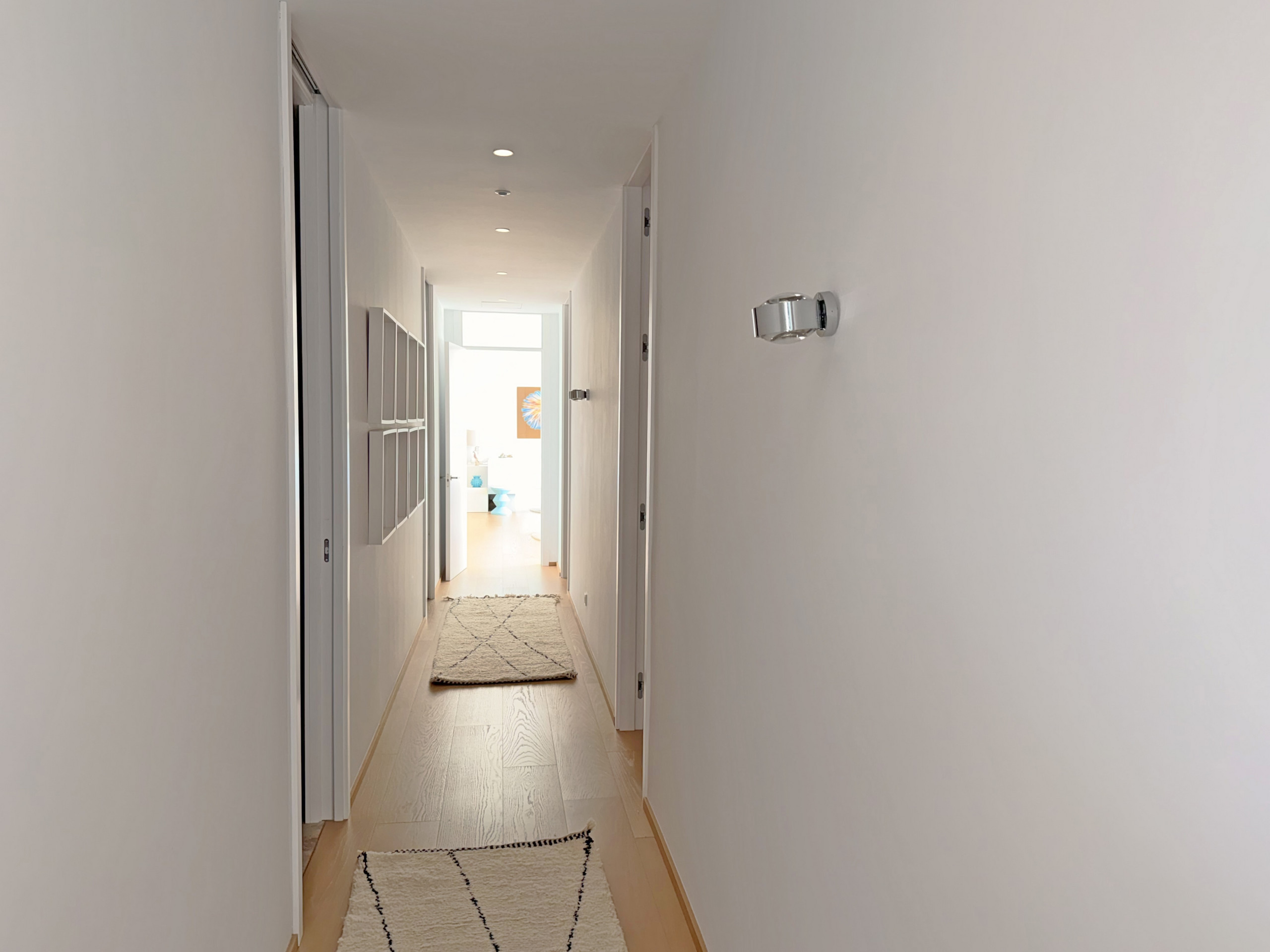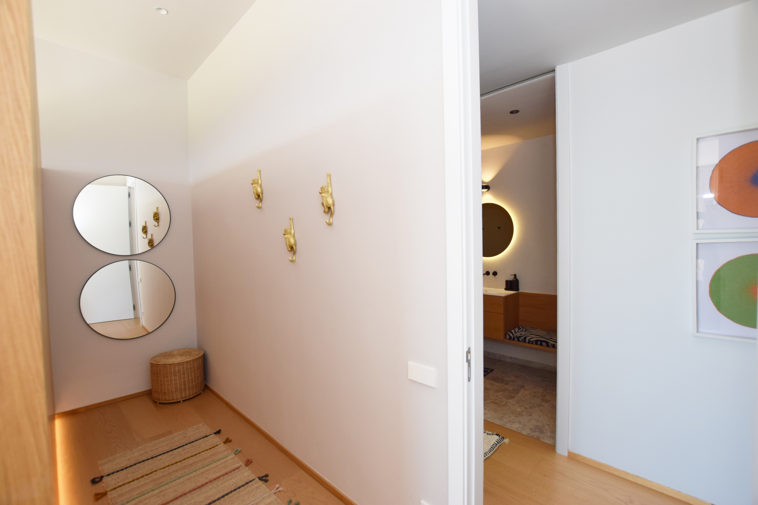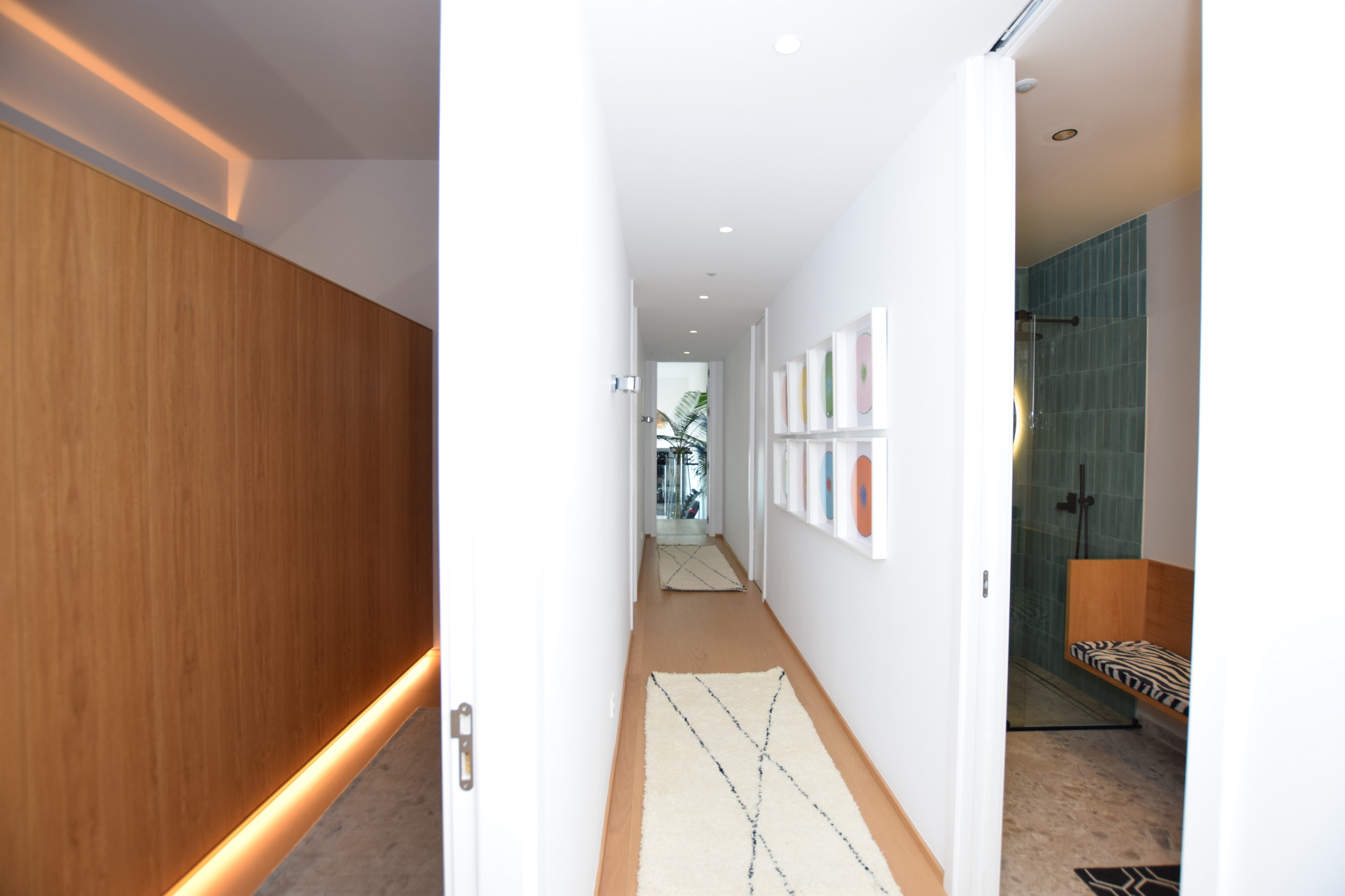Desde la parte izquierda al bajar la escalera, accedes a un recibidor privado que distribuye a 2 Dormitorios, uno de ellos con baño en suite y preciosas vistas al jardín.