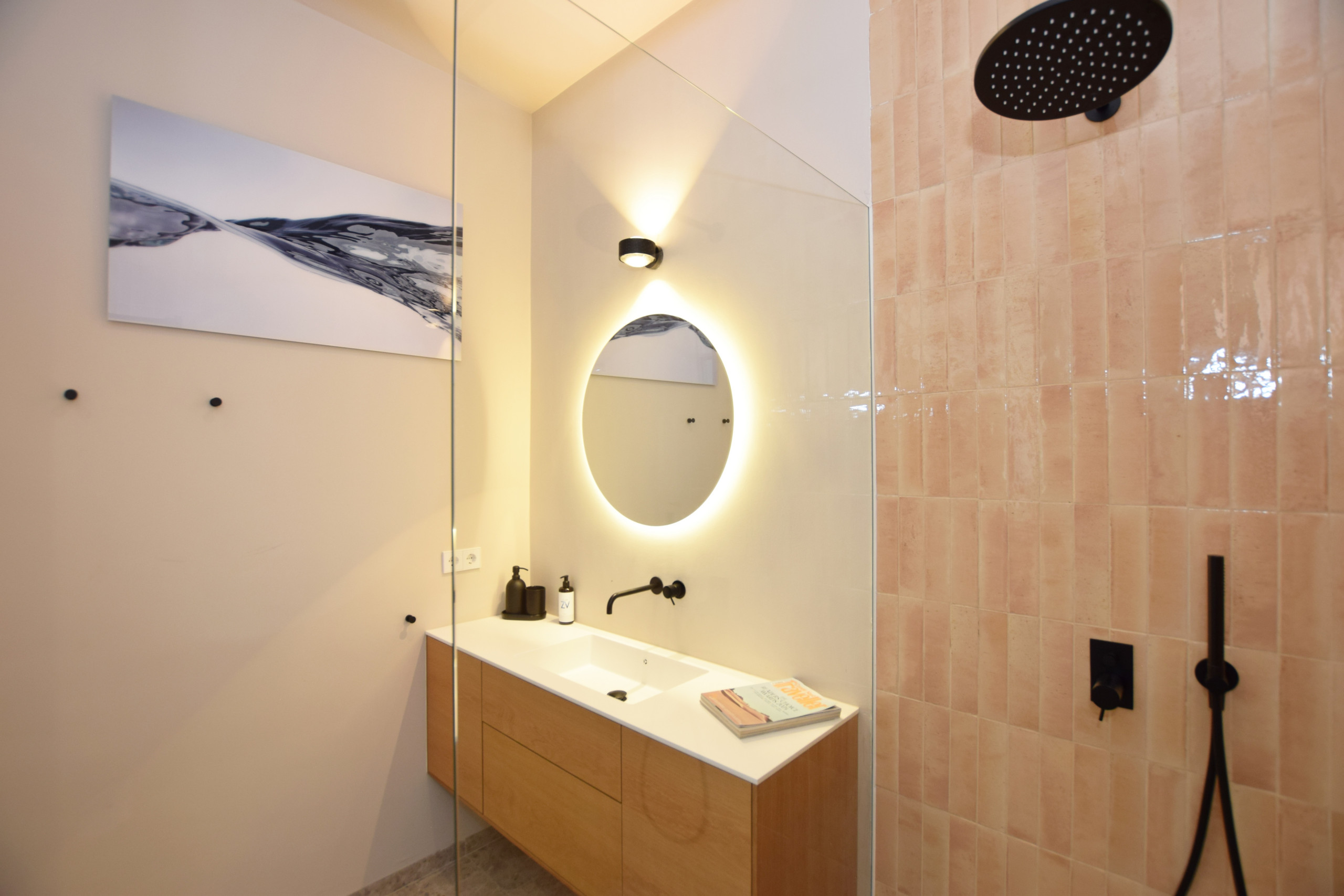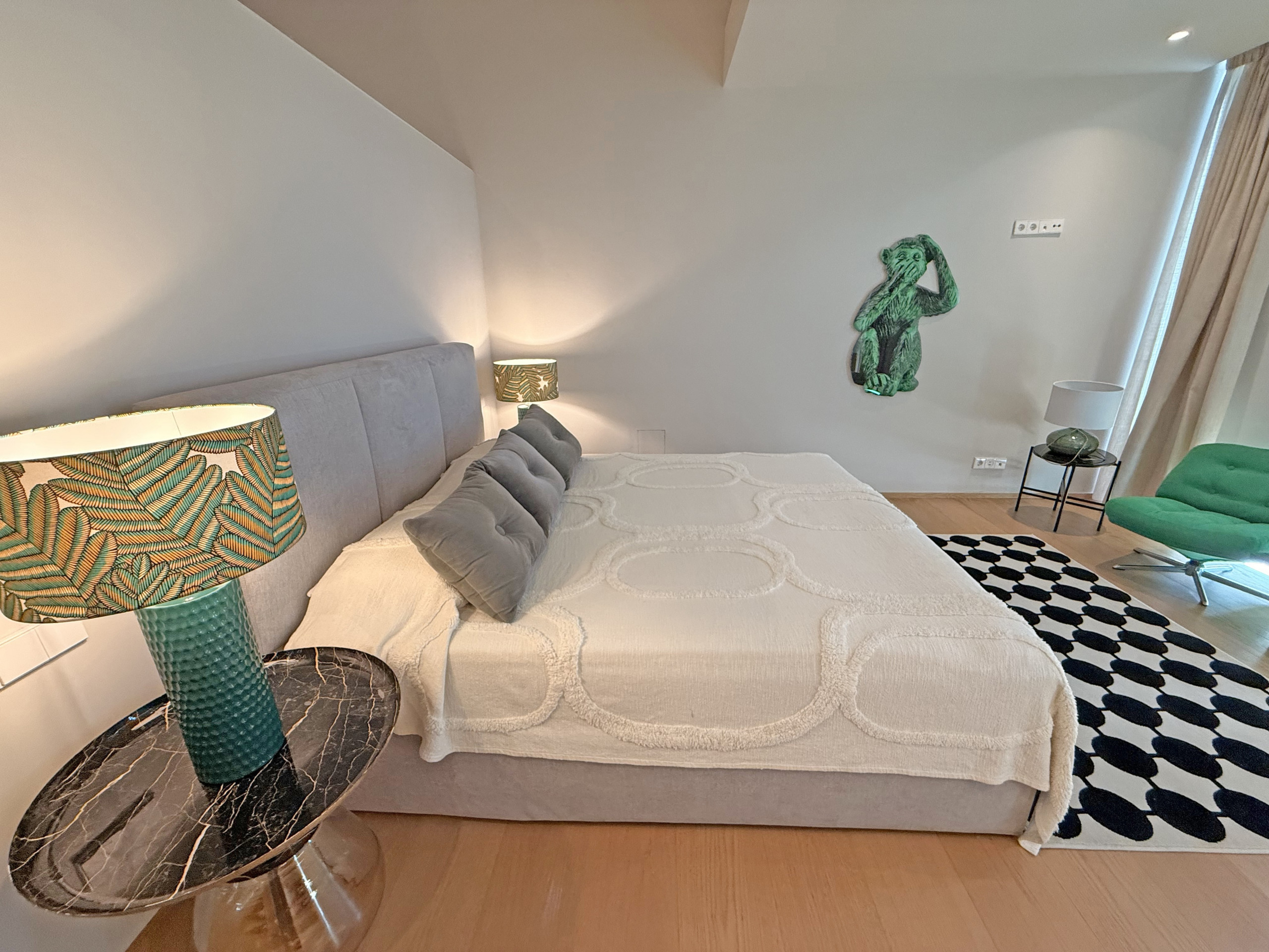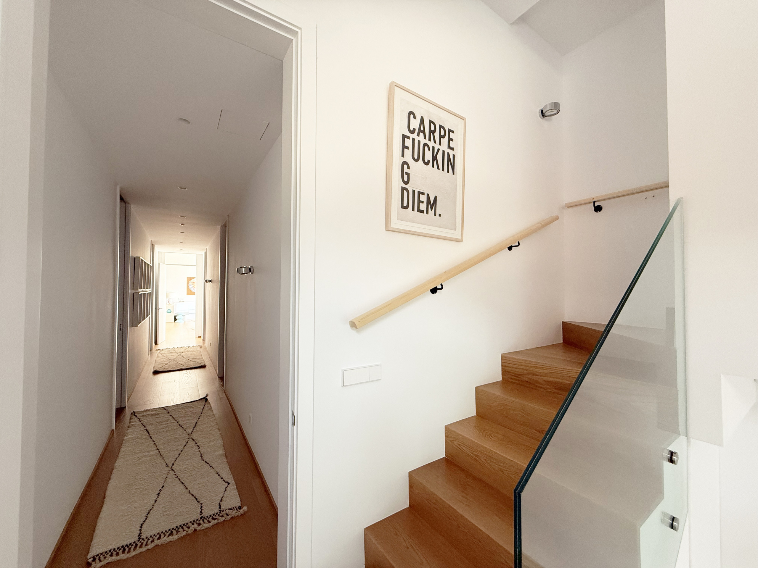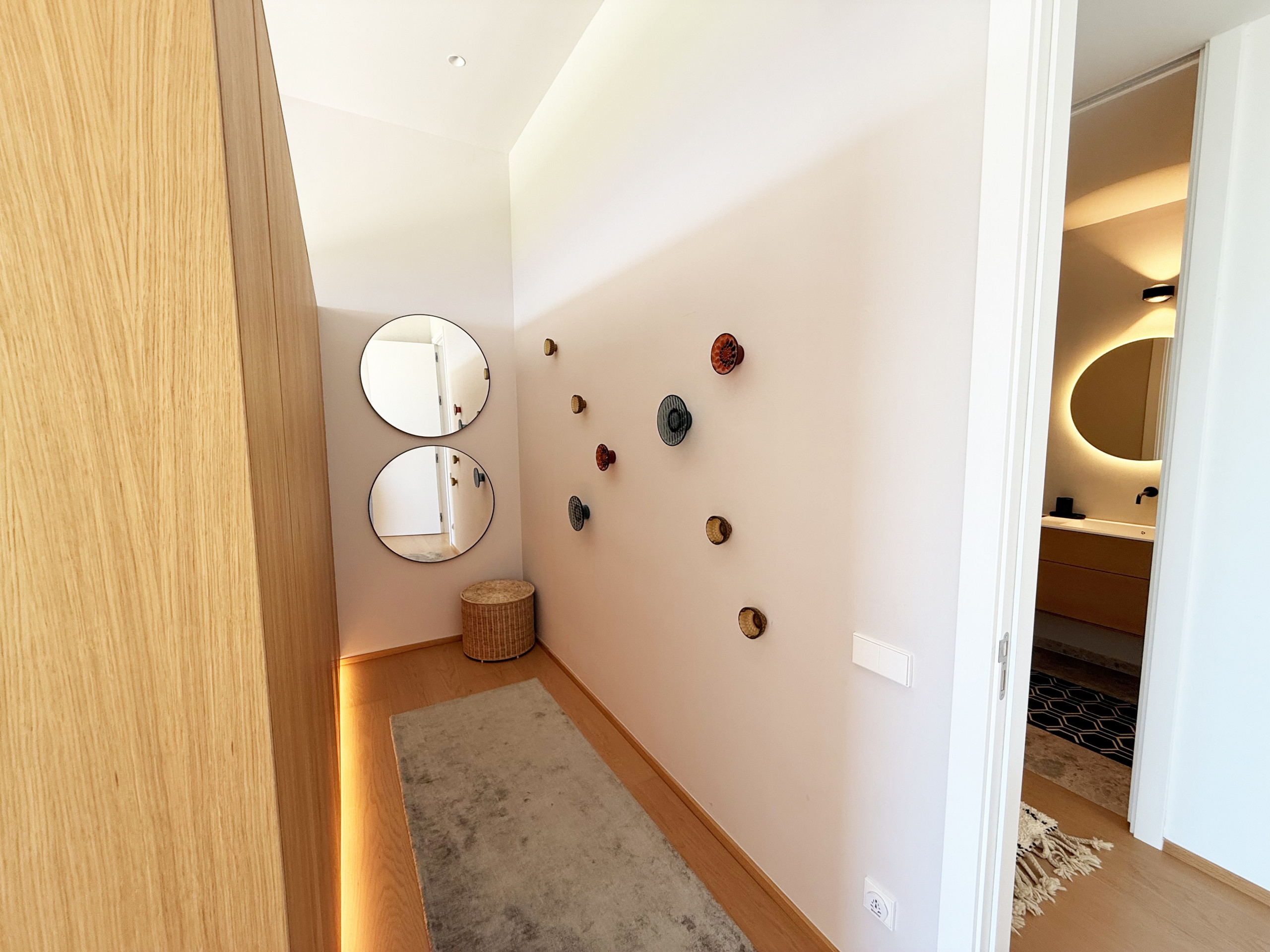 Desde la parte izquierda al bajar la escalera, accedes a un recibidor privado que distribuye a 2 Dormitorios, uno de ellos con baño en suite y preciosas vistas al jardín.