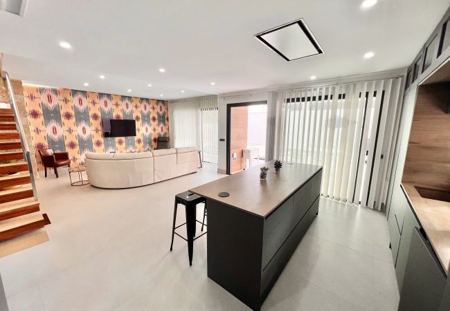 En la planta baja, encontrarás un amplio y luminoso salón con cocina totalmente equipada en espacio abierto, un baño con ducha y una habitación con dos camas individuales. Desde la zona de salón y cocina, accederás a un comedor bajo porche...