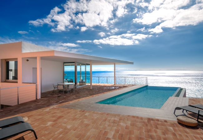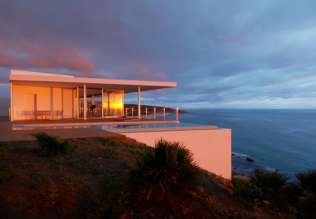Exclusiva villa en alquiler en un entorno privilegiado; sobre un acantilado, en el extremo occidental del Parque Natural del Estrecho, con vistas panorámicas al Océano Atlántico, una de las villas contemporáneas más espectaculares sobre La Playa de los Alemanes, en la zona de Atlanterra, en Zahara de los Atúnes ( Cádiz).