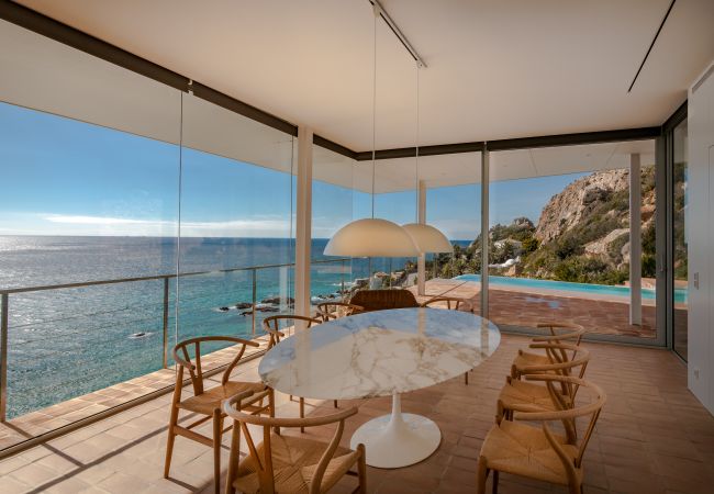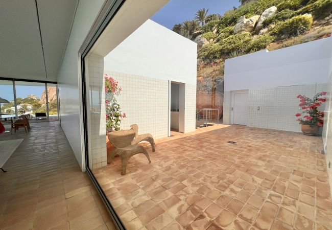 En su interior disfrutamos de una visión absoluta del mar, lo que nos da una sensación de ligereza de volúmenes y contacto directo con la orografía del terreno.